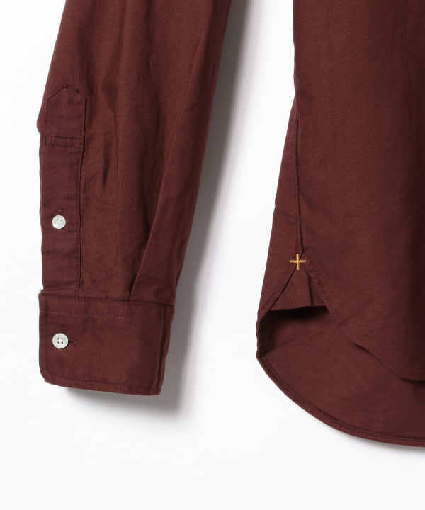 The pattern is based on American-made button-down shirts produced in the 1960s, with narrow (3mm) lockstitch side seams and 18 stitches per 3cm. All processes are completed by skilled artisans in Japan. Plus-shaped bar closures at both sides of the hem add a distinctive BEAMS PLUS accent.