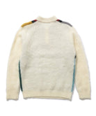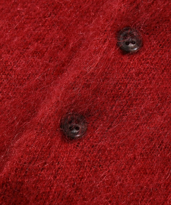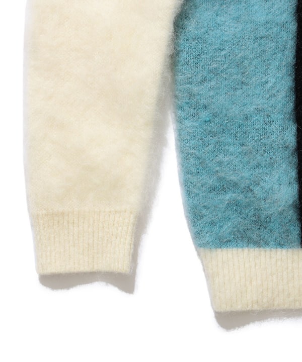 Knitted with a 9-gauge double jacquard using a very rare 1/13 kid mohair blend yarn from Angora goats less than one year old. The surface is brushed for a soft finish. The brushed finish adds a warmth perfect for the fall and winter seasons, adding a touch of warmth to the soft texture of kid mohair.