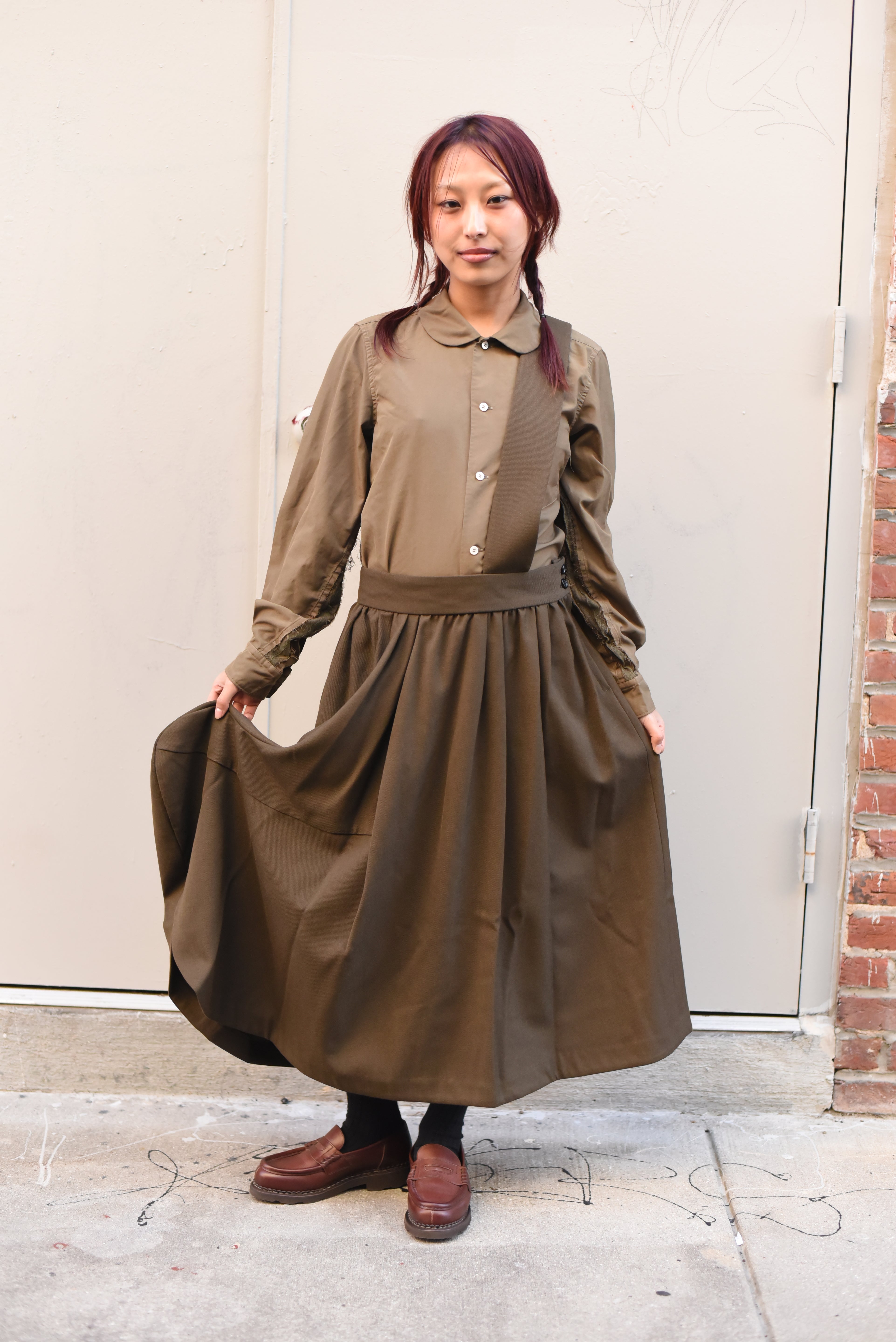 Comme des Garçons Comme des Garçons (CDGCDG) Ladies Suspender Skirt { RL-A010-051-3 } - Khaki
