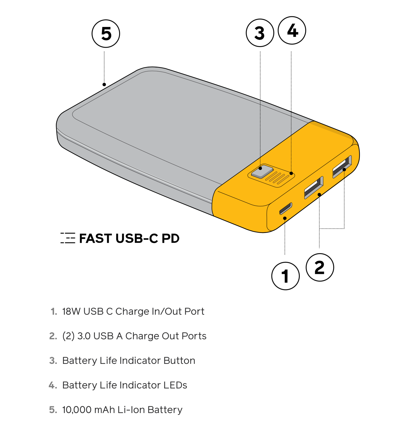 - 10,000 mAh rechargeable battery