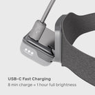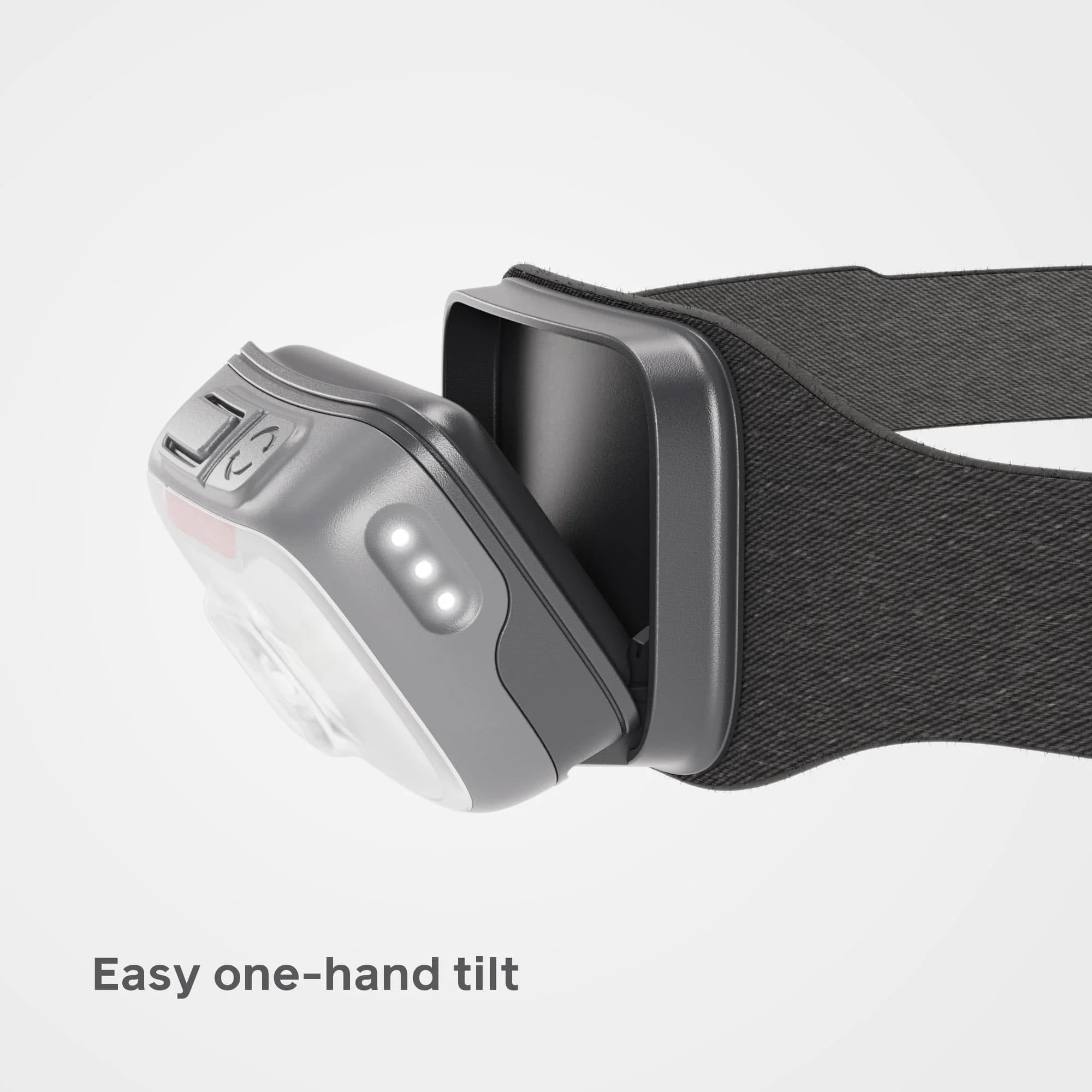 Bright, durable, and fast charging, this Headlamp helps you go far, stay late, and adventure outside. Features 500 lumens, white and red lighting modes, IP67 submersible waterproof rating, moisture-wicking band, easy tilting, and ultrafast recharging. 8 minutes charge adds a full hour of brightness so you get back out there, fast. 3 Year Warranty Included.