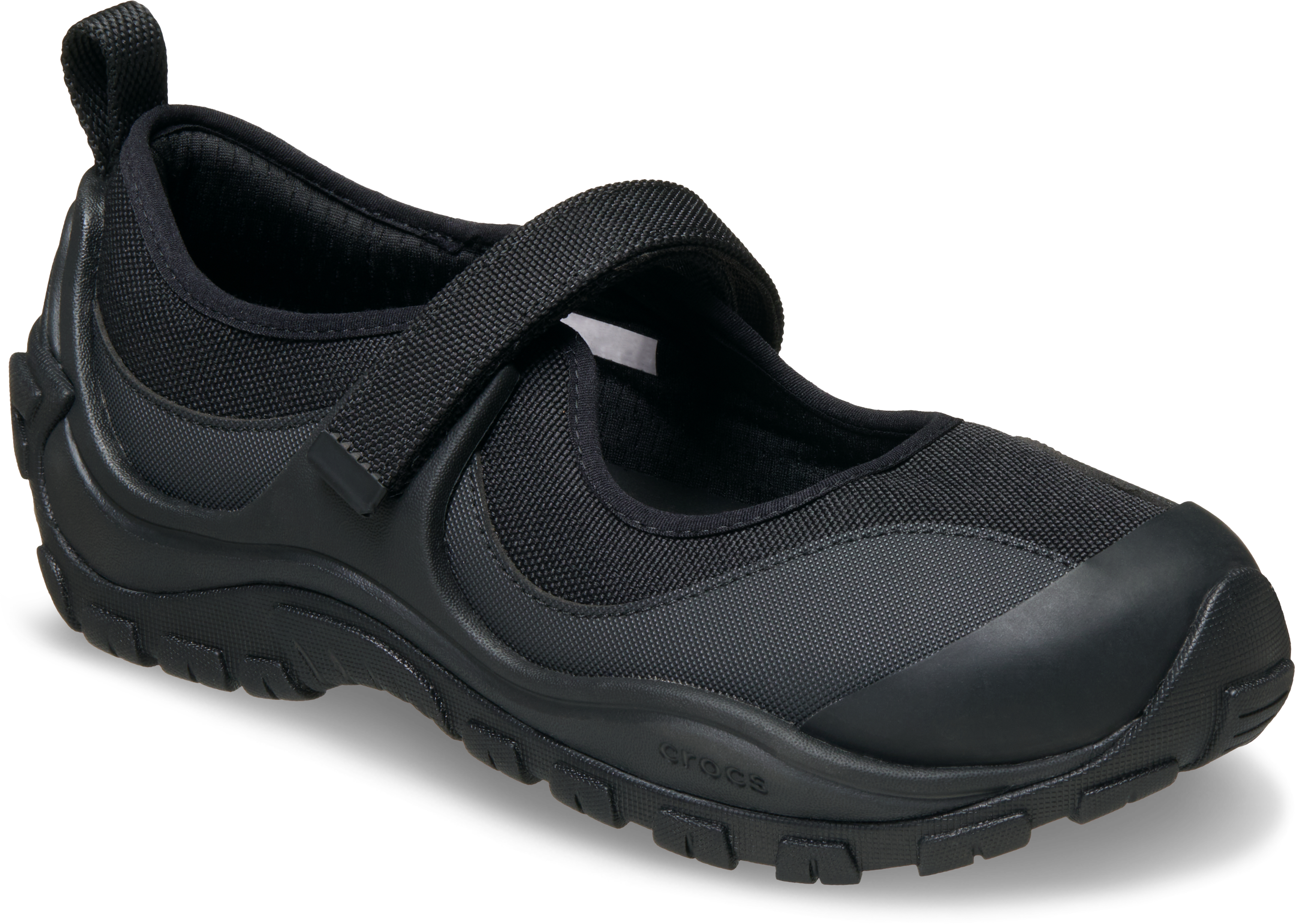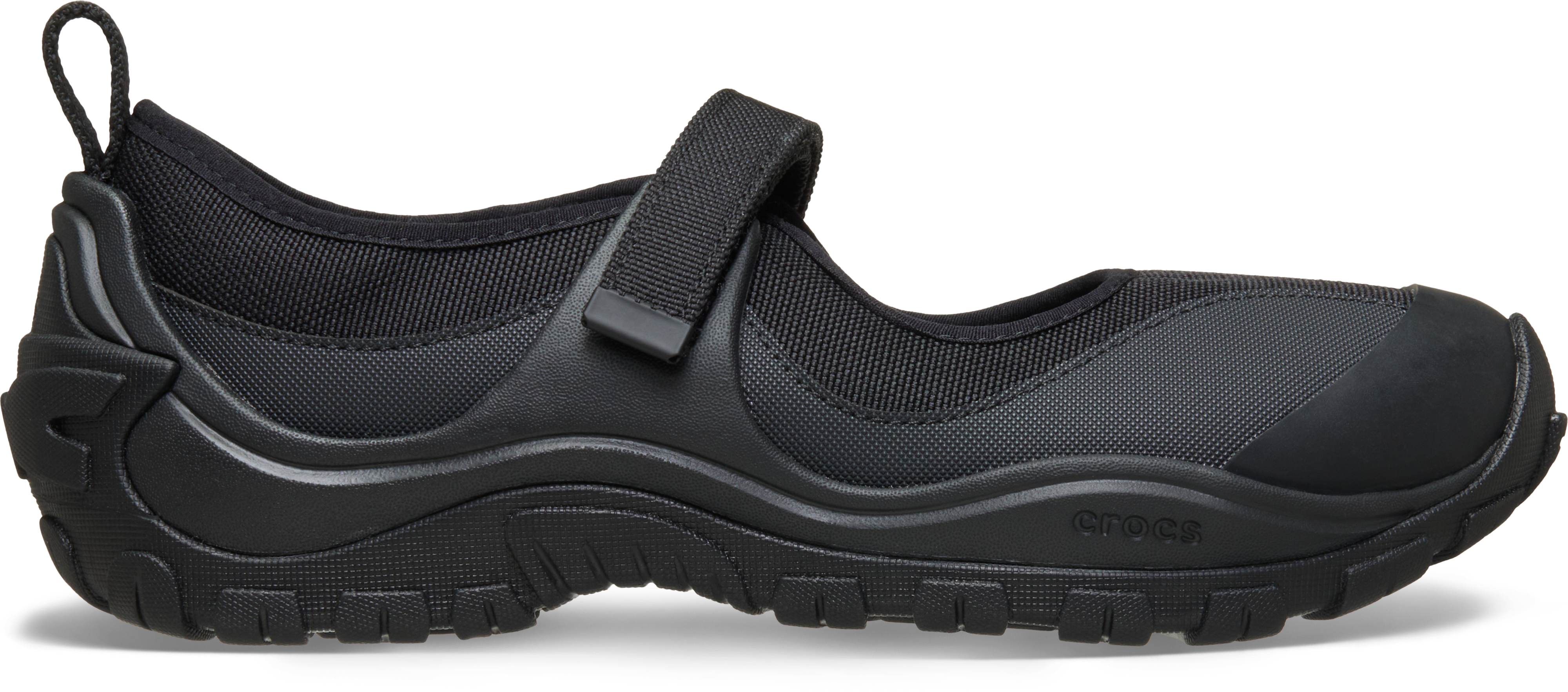 Slip into style with Crocs Terre. These Mary Janes feature a sleek black on black colorway and easy velcro straps for a secure fit. Perfect for a casually chic look.
