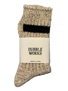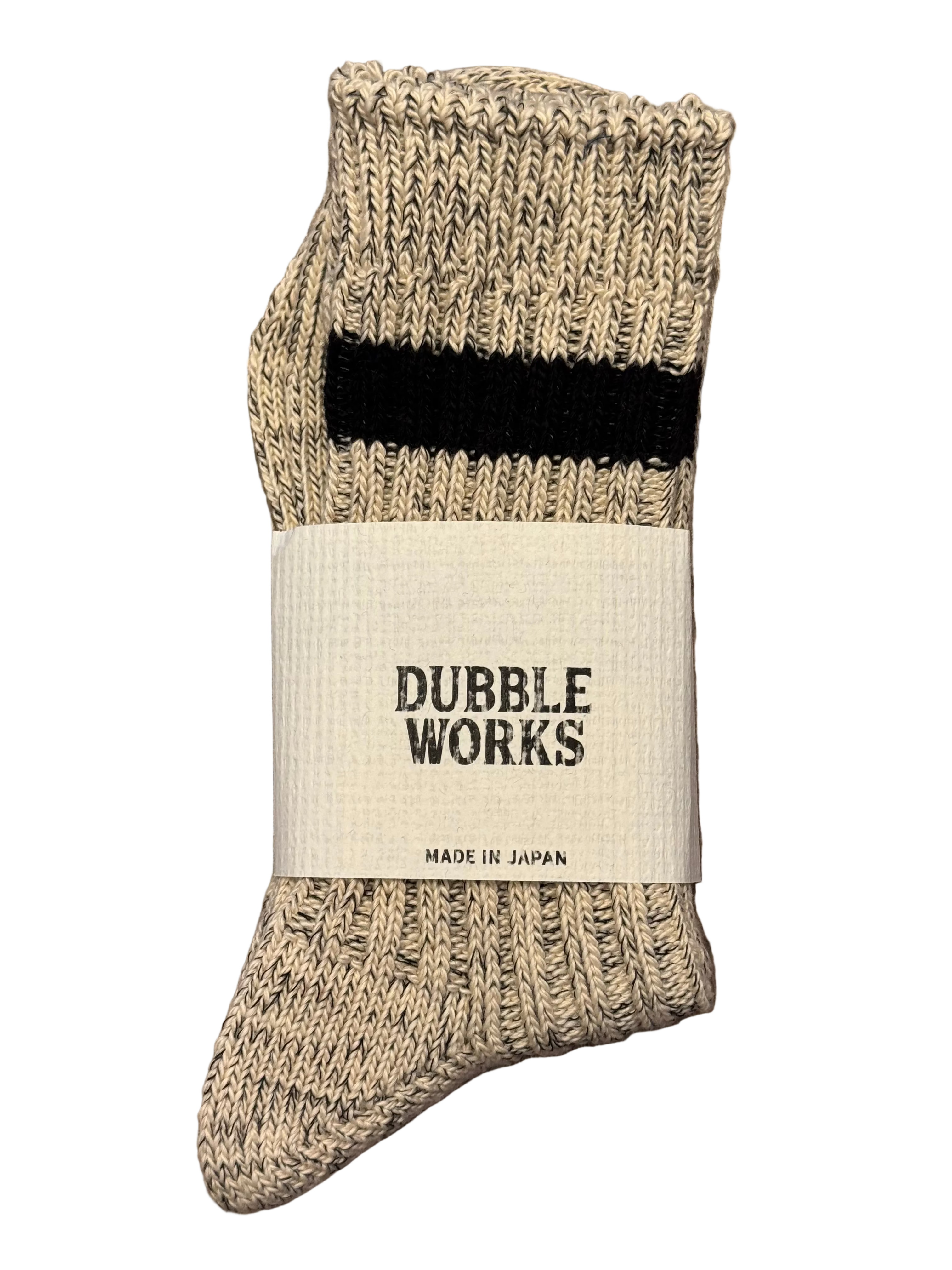 Crafted by Dubbleworks in Osaka using heritage Marudo loop-wheel tubular knitting machines, these low gauge rib socks embody meticulous Japanese manufacturing. Every step—from spinning to sewing—happens in-house, creating a fabric of exceptional softness and durability. The slow, deliberate production process yields a quality that echoes the golden era of American sportswear, blended with authentic Japanese craftsmanship. Pure 100% cotton construction ensures breathability and comfort. A timeless essential made in Japan.