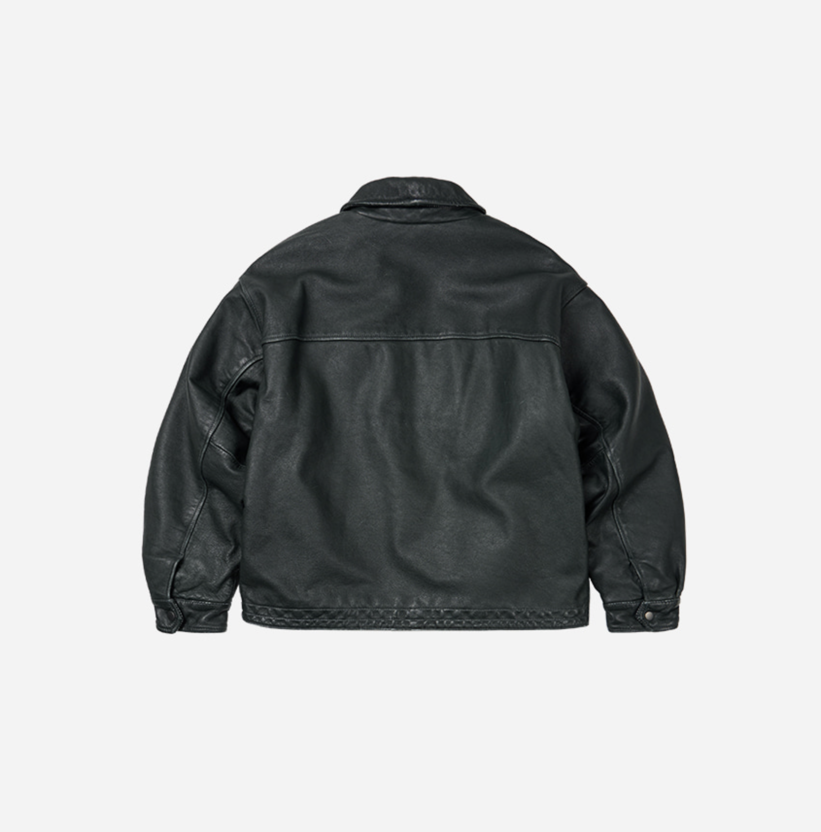 FrizmWorks Destroyed Cowhide Leather Jacket - Washed Olive