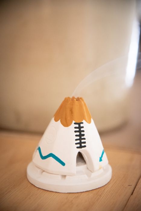 Incienso de Santa Fe White Teepee Burner - Turquoise & Buckskin with Piñon Natural Wood Incense