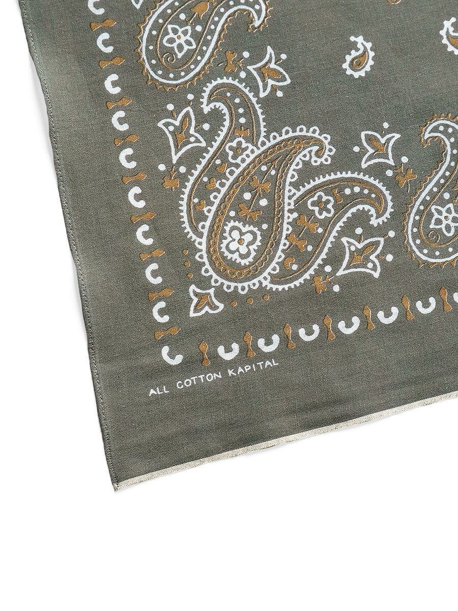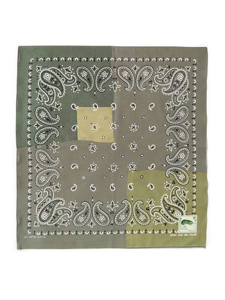 Kapital Fastcolor Selvedge Bandana (PaisleyPatchwork) - Khaki / Dark Green