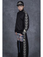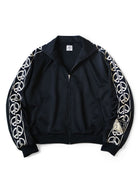 A track jacket using a piece mark pattern tape designed with the letter "D" that matches the mirror. We use a jersey material with a smooth and smooth structure.
