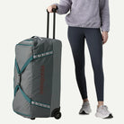 A highly weather-resistant gear hauler with sturdy wheels and a telescoping handle. Made with 100% recycled body fabric, lining and webbing.