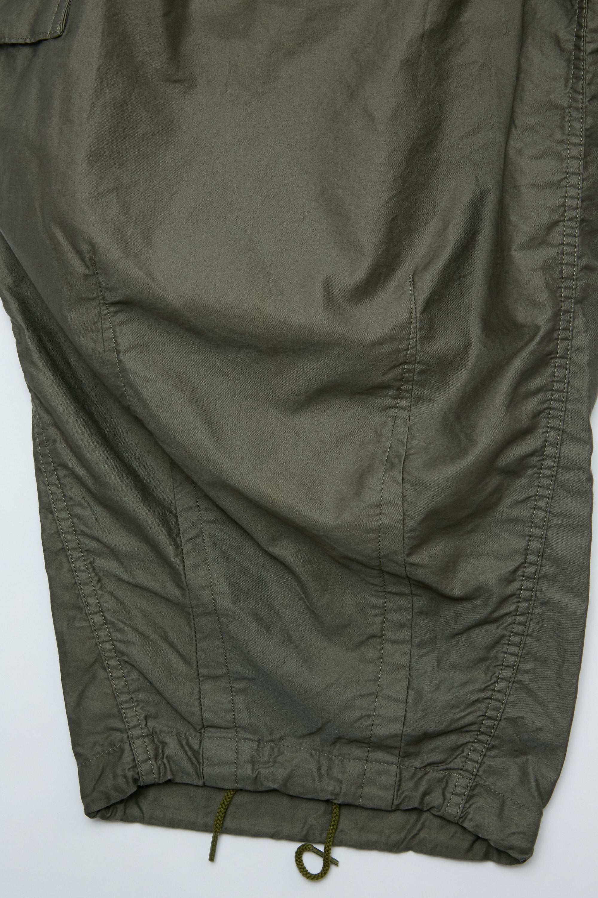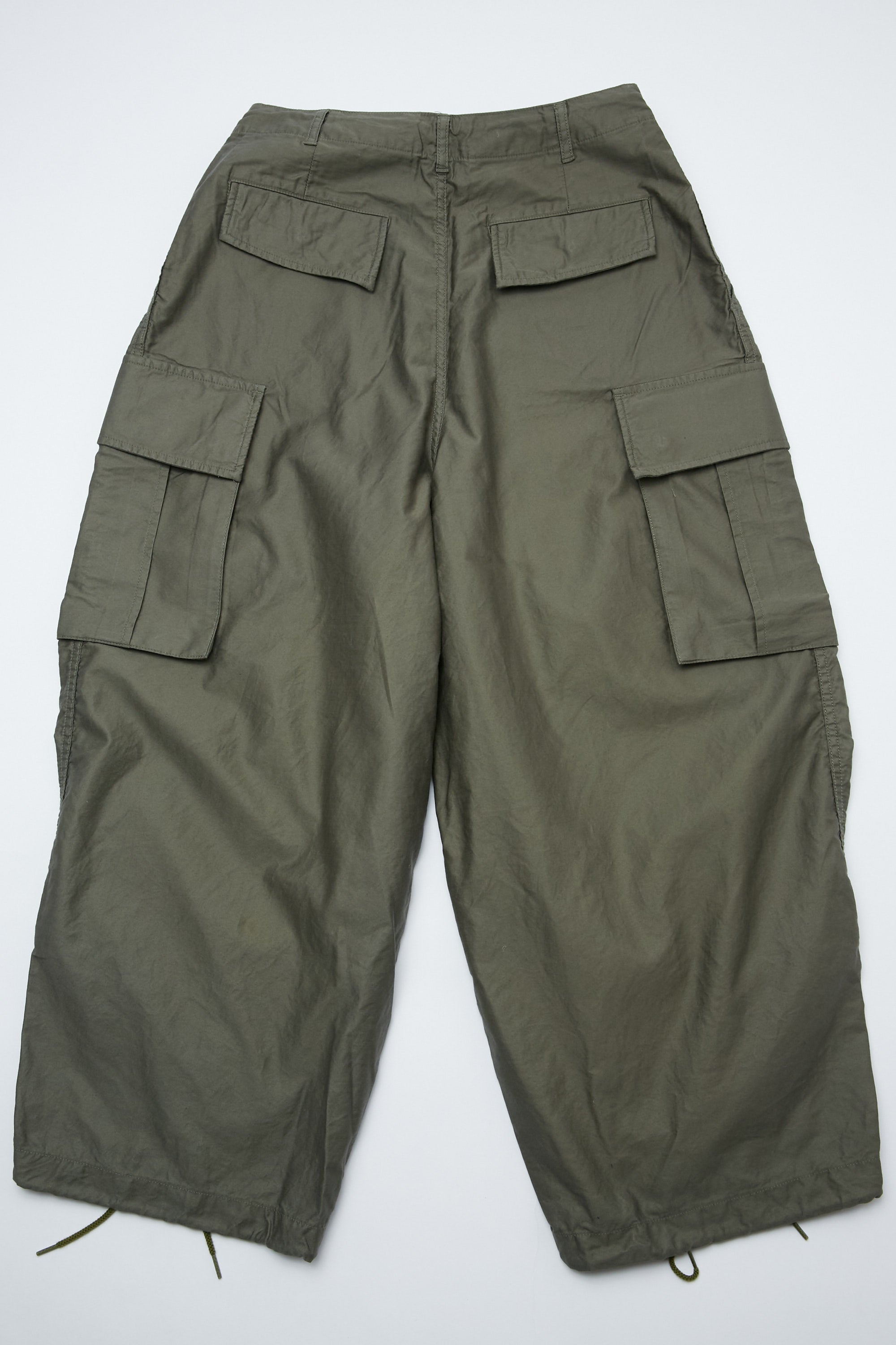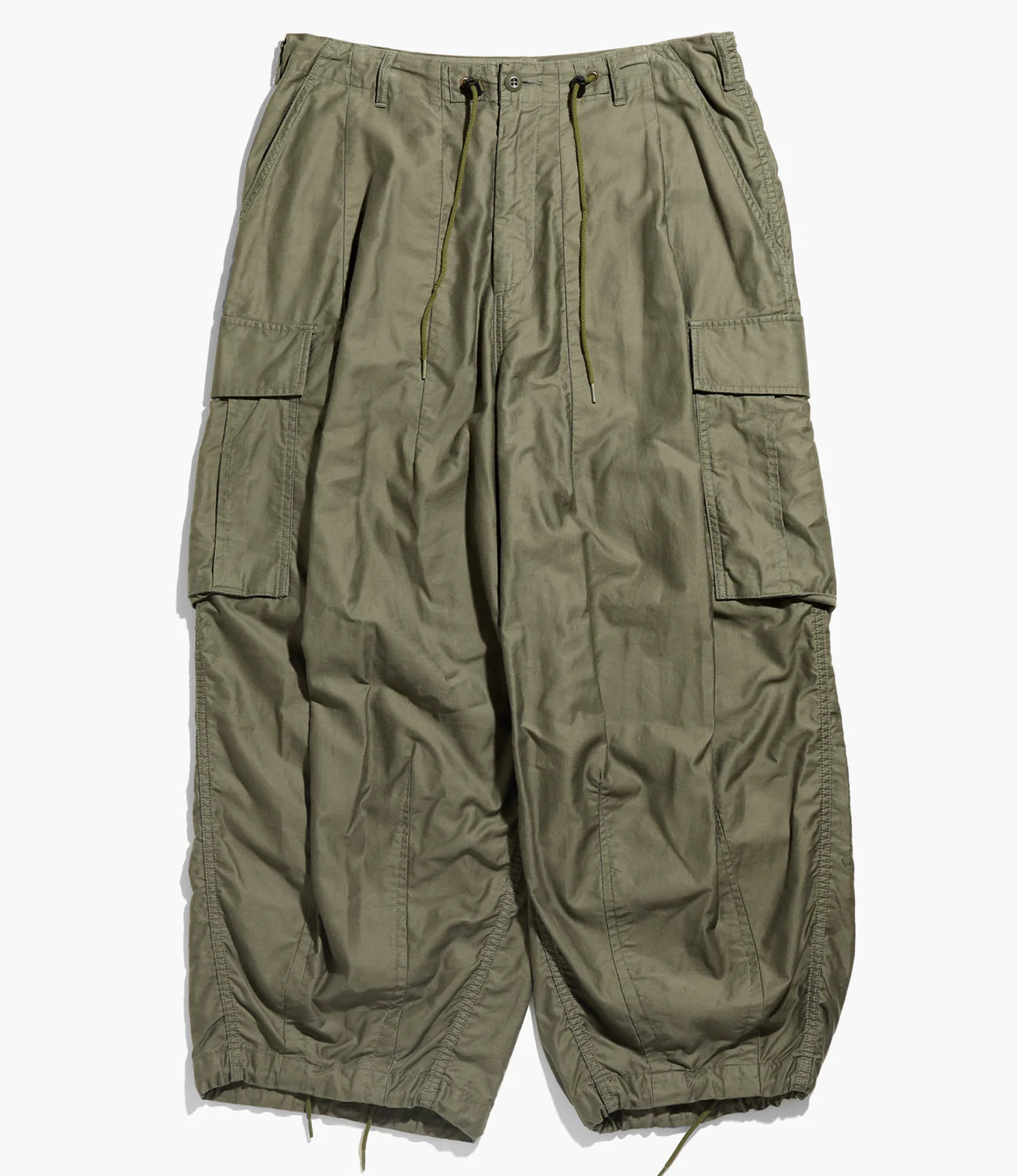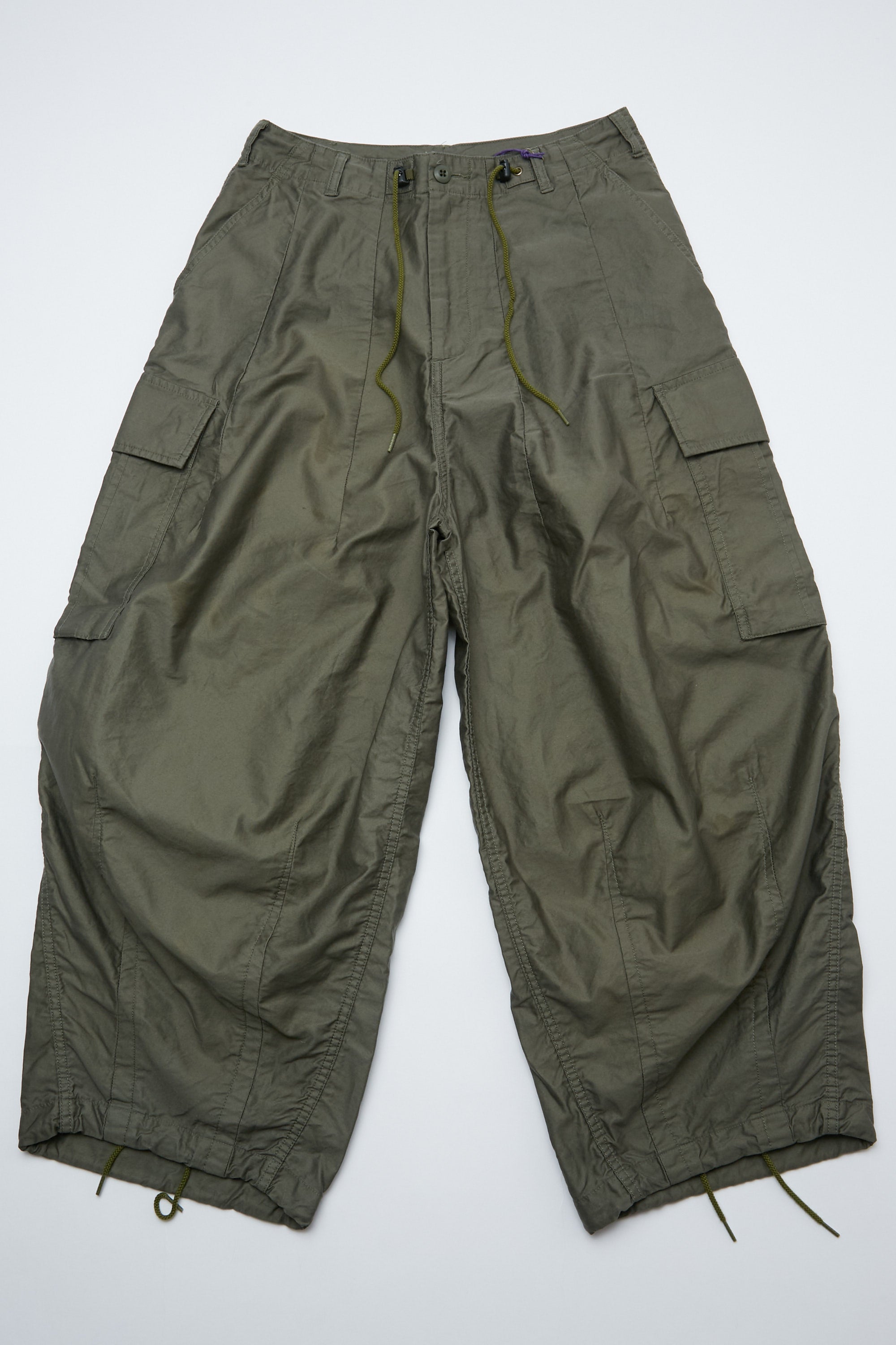 The unique silhouette of the Needles HD Pant appears in every season's collection. The wide, exaggerated HD (hiza-deru, or 'knee-out') shape is created by darts sewn into the waist and hem, giving the pants a striking dimensionality and a loose, comfortable feeling. The BDU version – inspired by the US Battle Dress Uniform – features cargo pockets and drawstrings in the waist and hems.