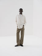 Tweed crafted using luxurious Super 120’s wool and uniquely spun into original thick yarns that feature a delightful mix of neps and rich irregularities. The rough, rustic appearance contrasts beautifully with the soft, supple texture created by spinning ultra-fine fibers into a thicker thread. The result is a homespun-inspired tweed with a smooth, warm feel, exuding both charm and sophistication.