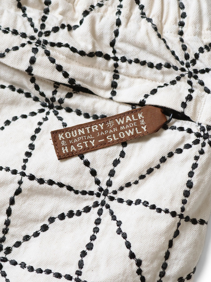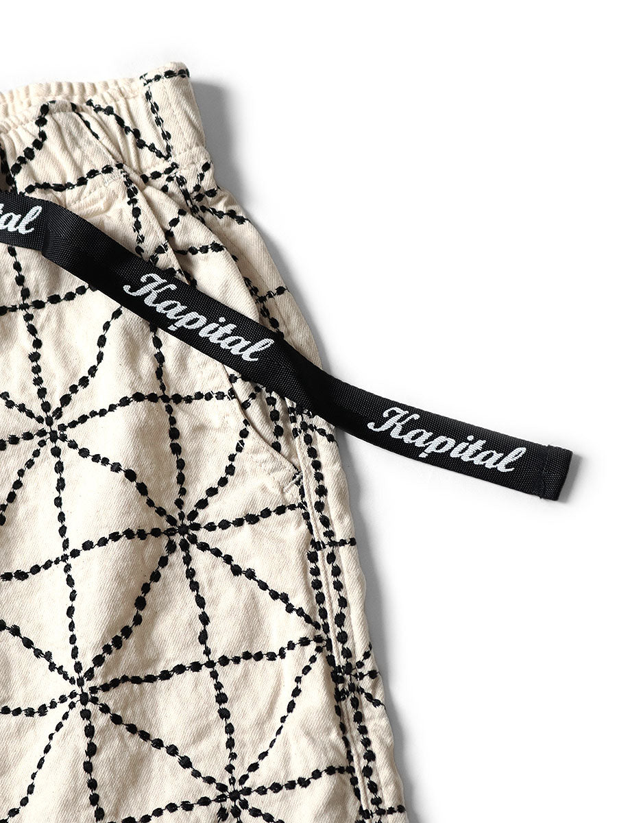 These shorts feature the same sashiko design seen on judo uniforms. They are made from 8oz colored denim and feature an elastic waistband and an adjustable belt for easy wear.