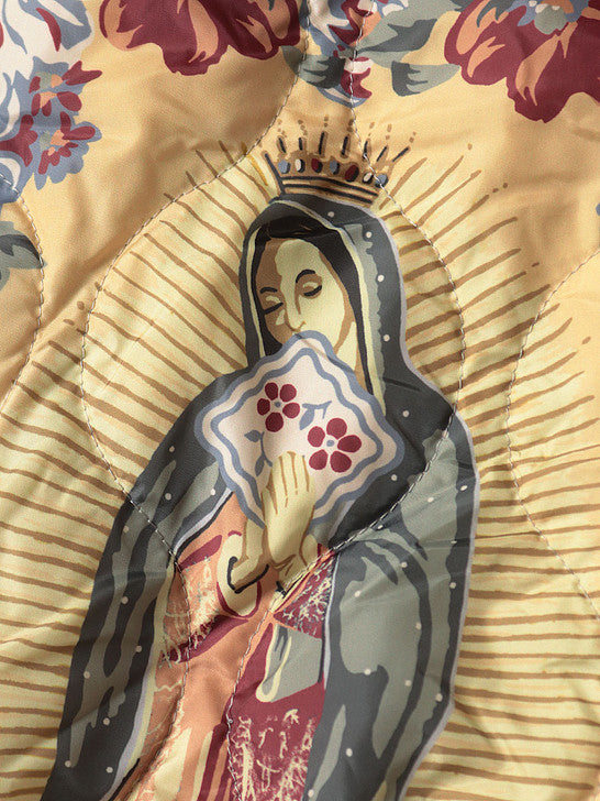 This sweatshirt features a striking quilted back panel showcasing an image of Maria cradling a cookie. Designed in an oversized fit, it offers a relaxed silhouette for ultimate comfort. The front is crafted from premium TOP fleece, combining softness with refined style.