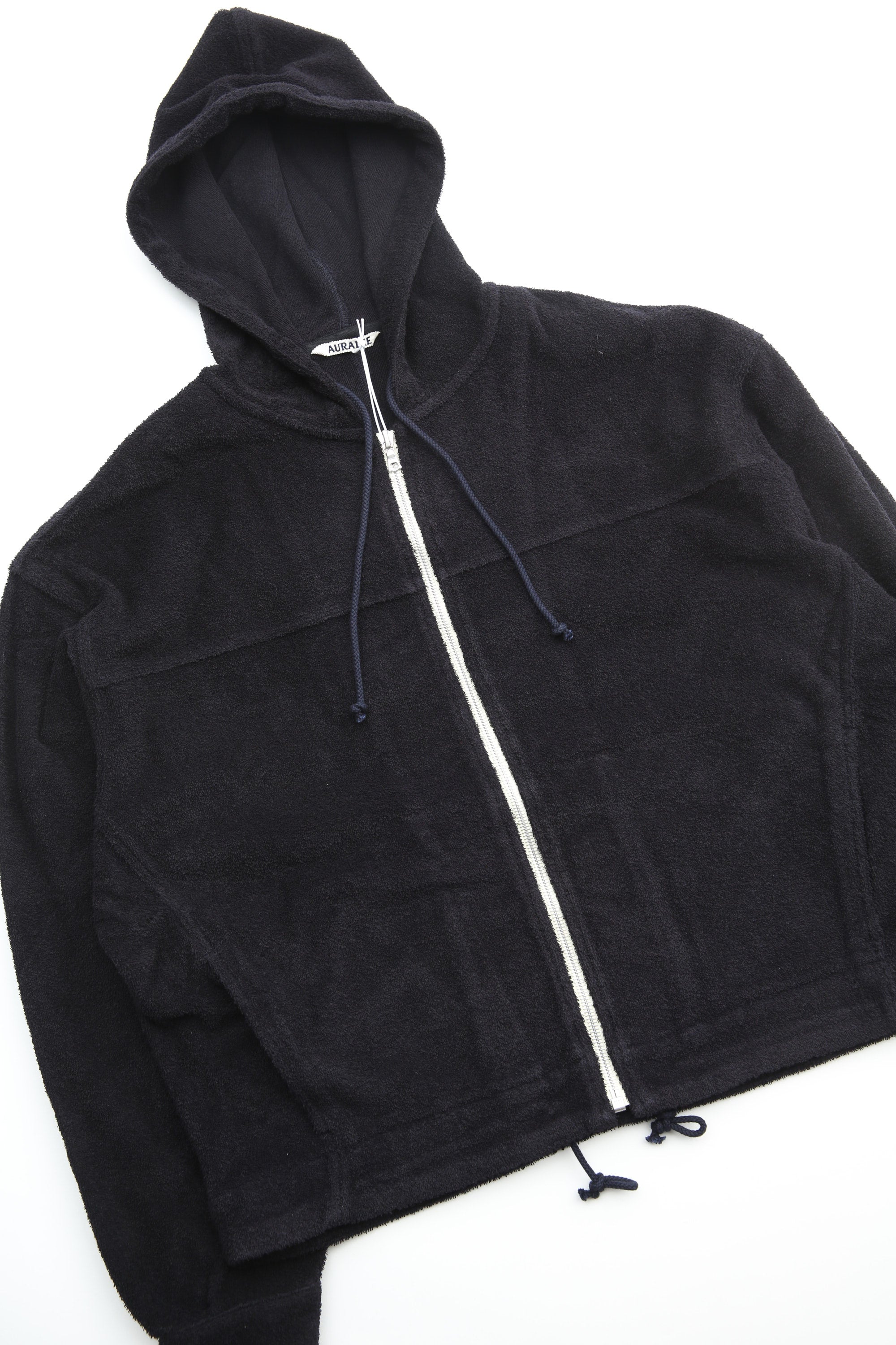 Auralee Cotton Nylon Pile Zip Parka - Navy