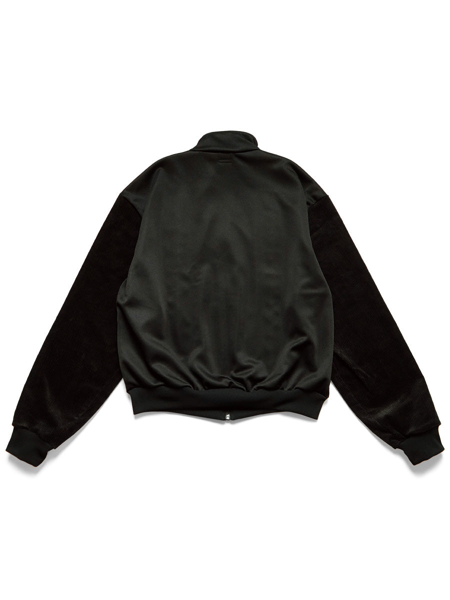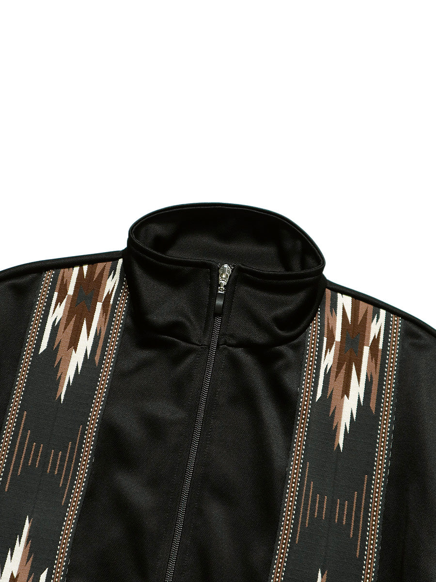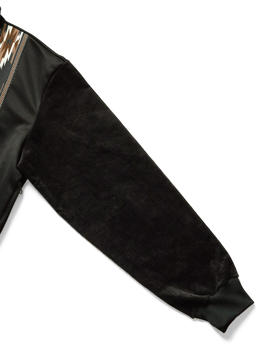 An eye-catching track jacket with an Ortega patterned front line. It uses smooth jersey with a smooth touch, and the sleeves are switched with a medium-ridge corduroy fabric.
