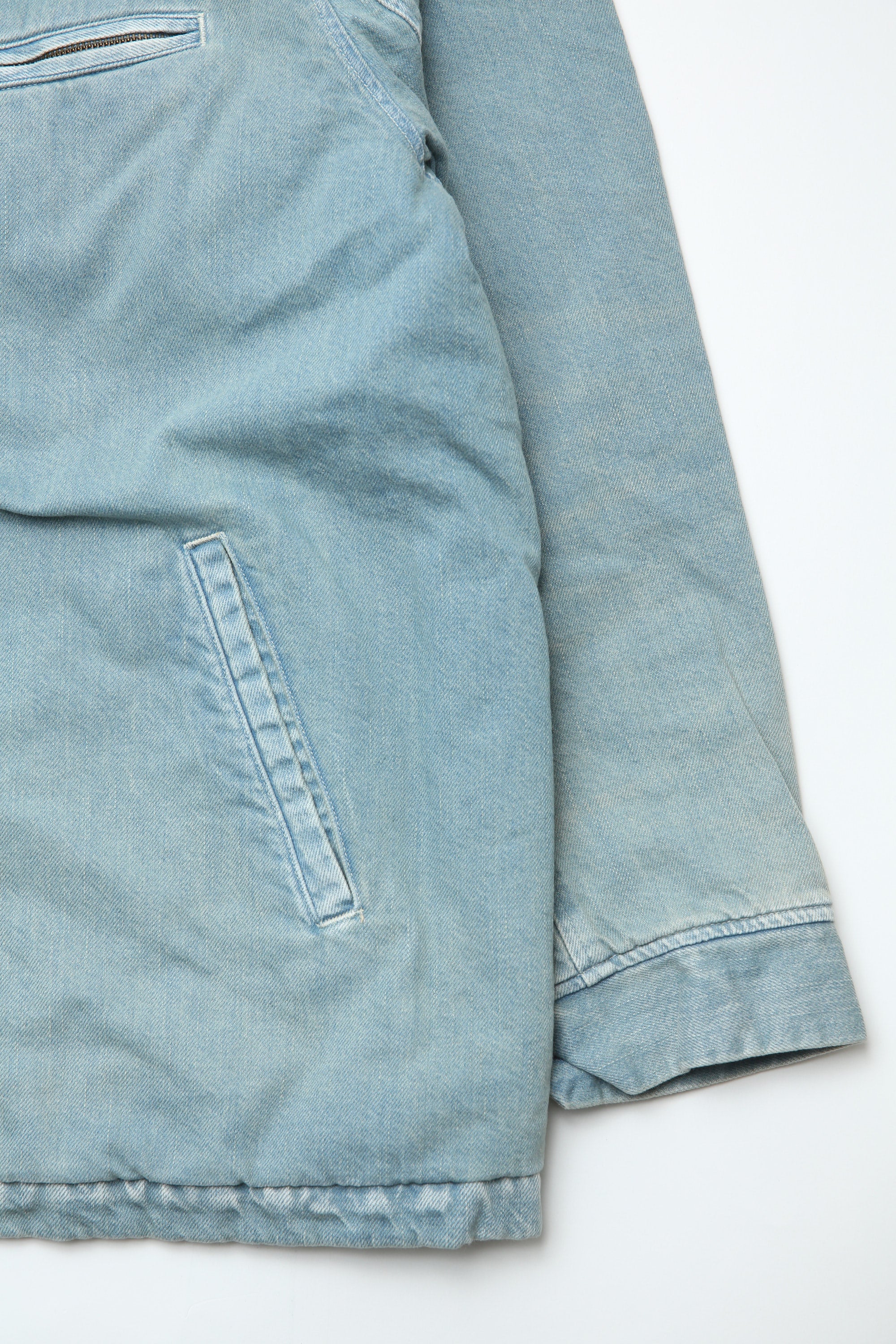 Introducing the Kapital 11.5oz Denim DOTERA Jacket (Noragi Remake) - PRO. Stay warm and stylish with its wool liner and quilted satin-lined sleeves. Perfect for cooler weather, this jacket is a quirky and fun addition to your wardrobe.