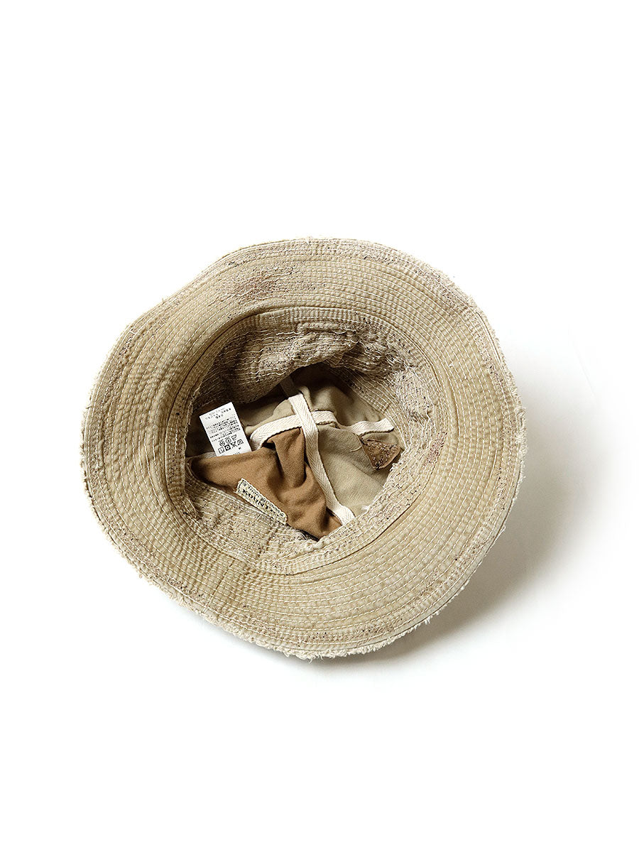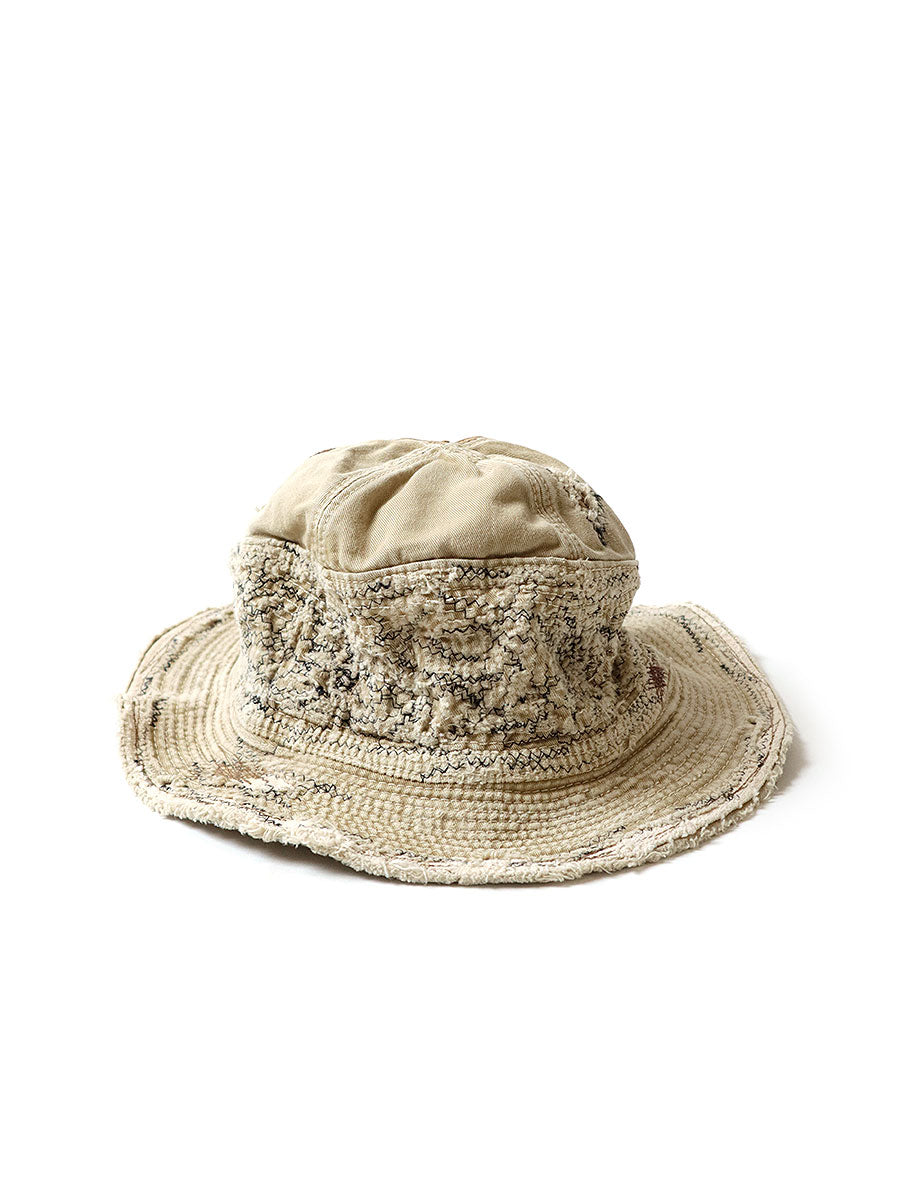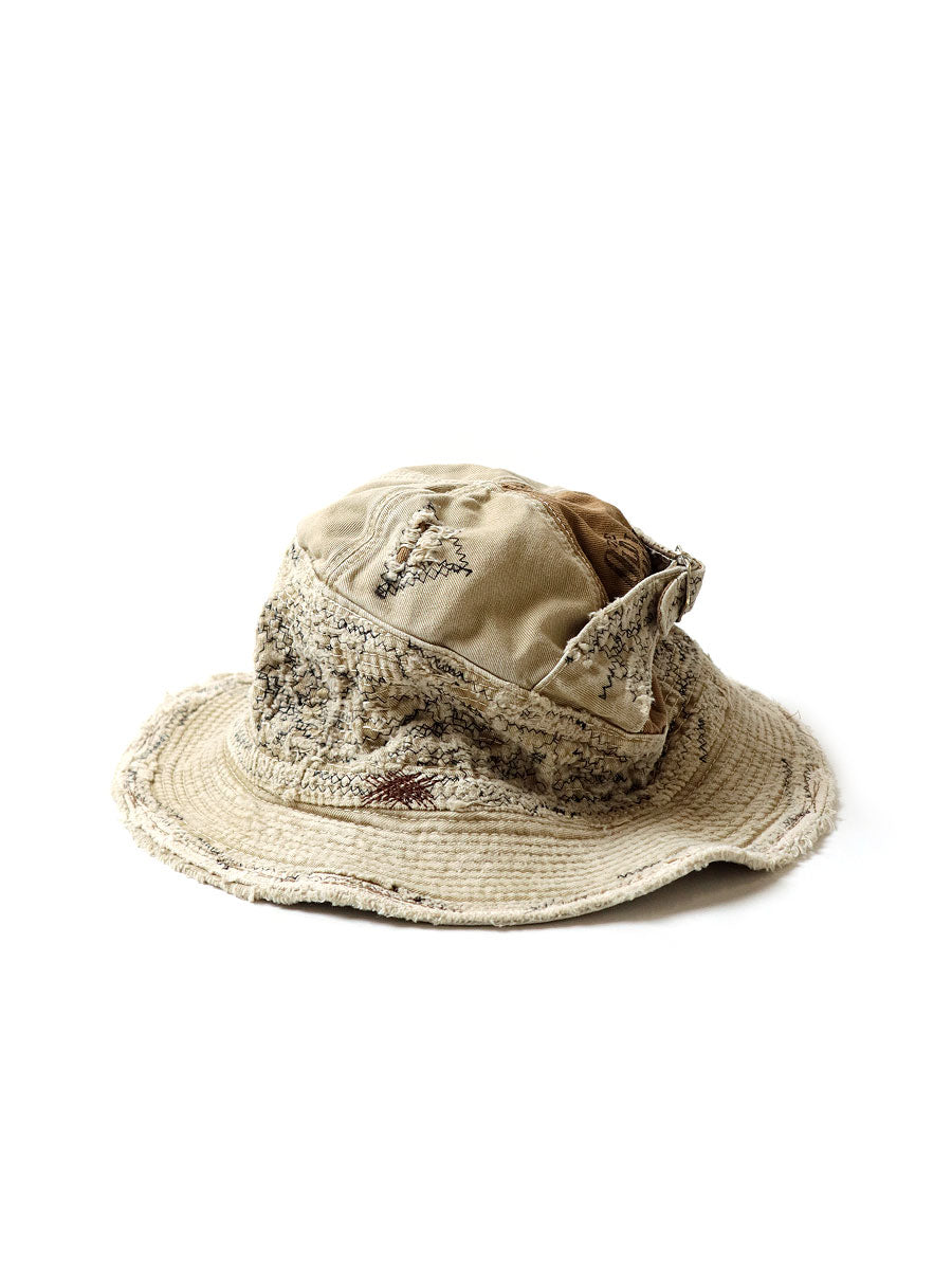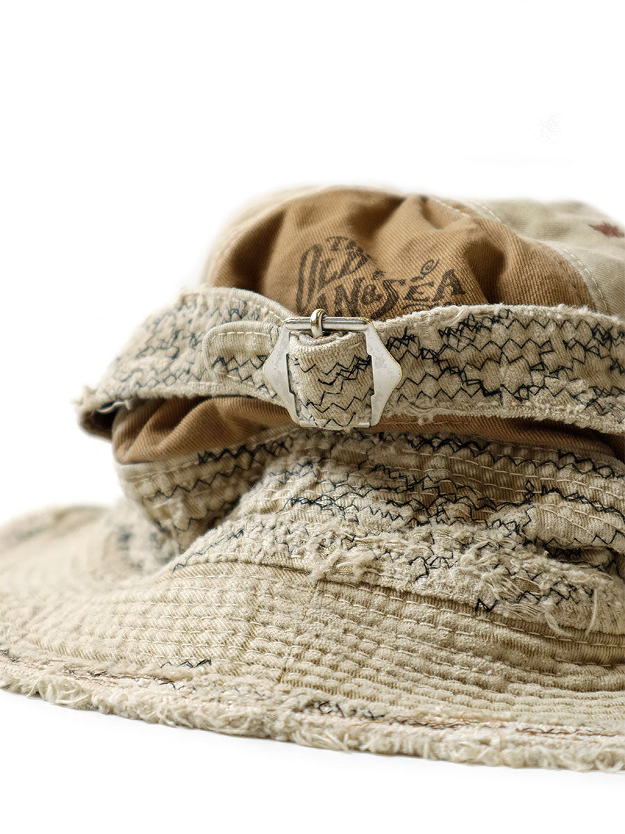 The old man and the sea HAT made of chino material remade by KOUNTRY's craftsmen. Countless stitching and bold damage were added.
