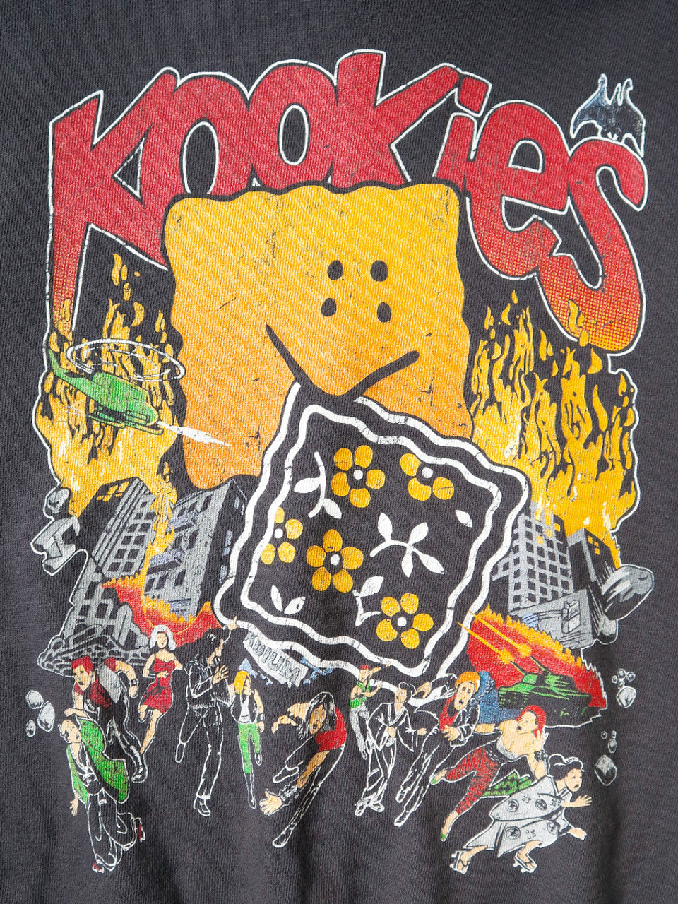 A funky hoodie with a nod to retro rock tees. Patterned with a tasty COOKIE-Y print. 100% cotton.