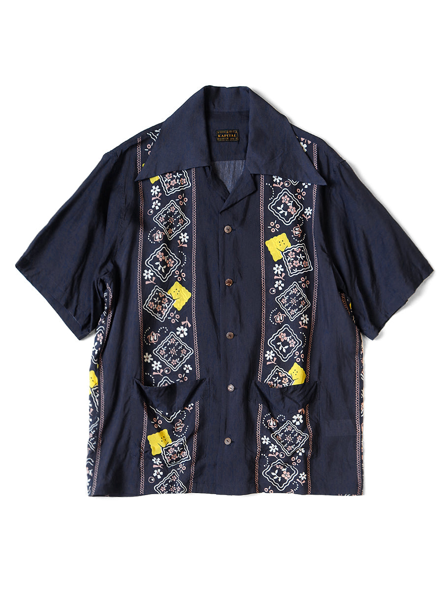 Kapital Silk Rayon PECKISH RAINBOWY WRANGLE Collar Cuba Shirt - Navy