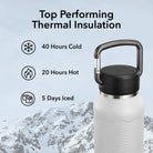 - Top insulation times: 40 hrs cold · 20 hrs hot · 5 days ice