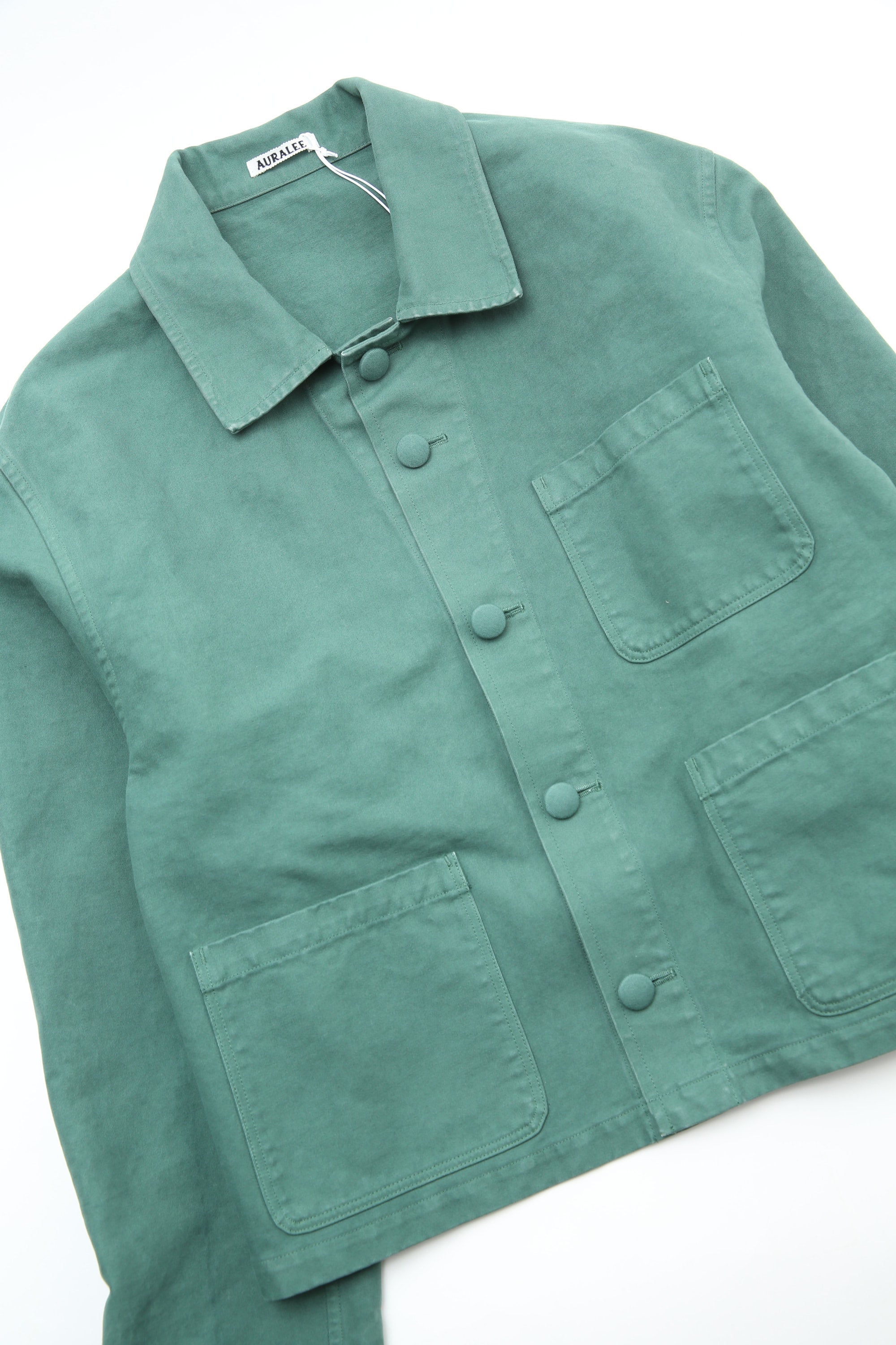 Auralee Garment-Dyed Organic Cotton Heavy Twill Short Work Jacket - Forest Green