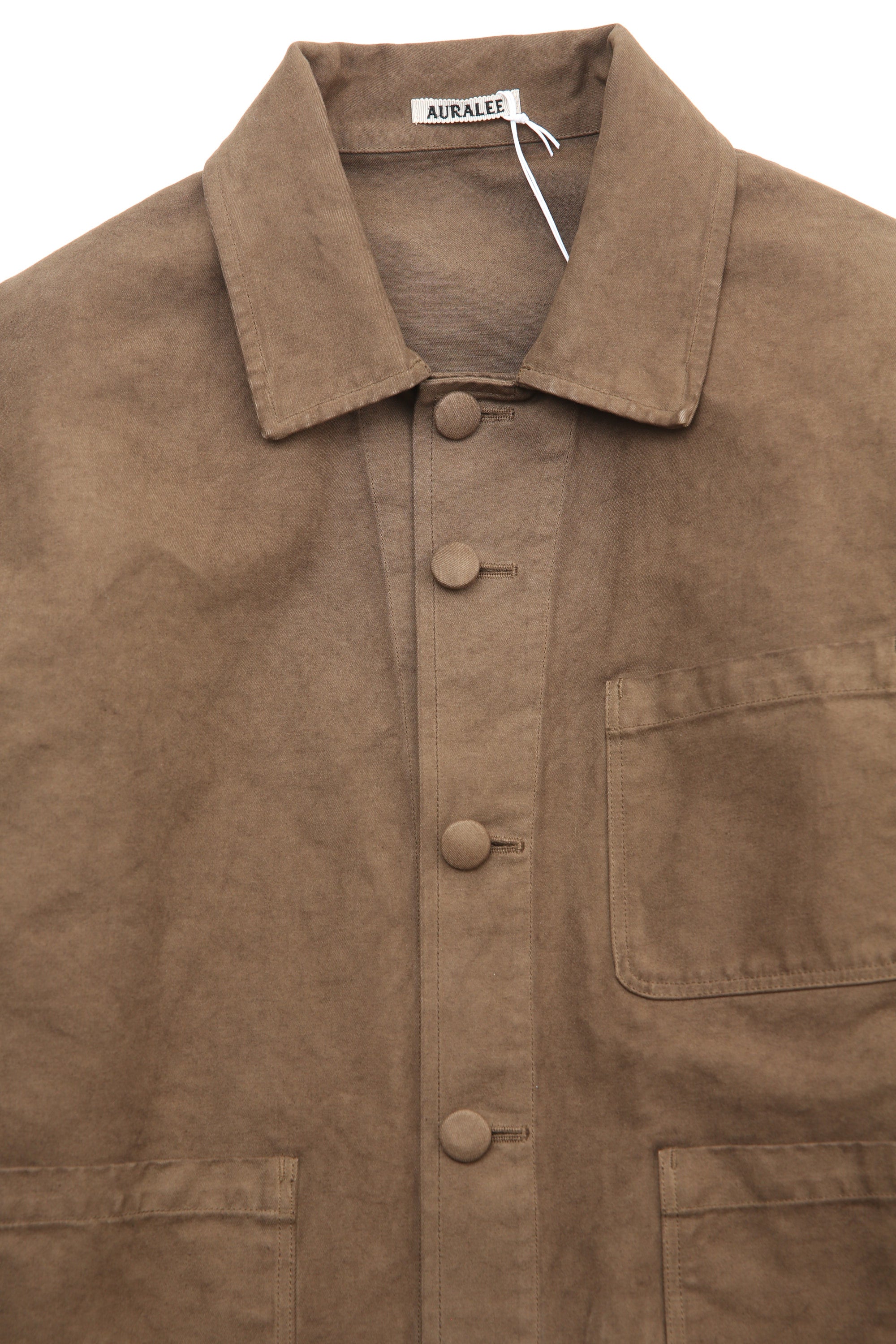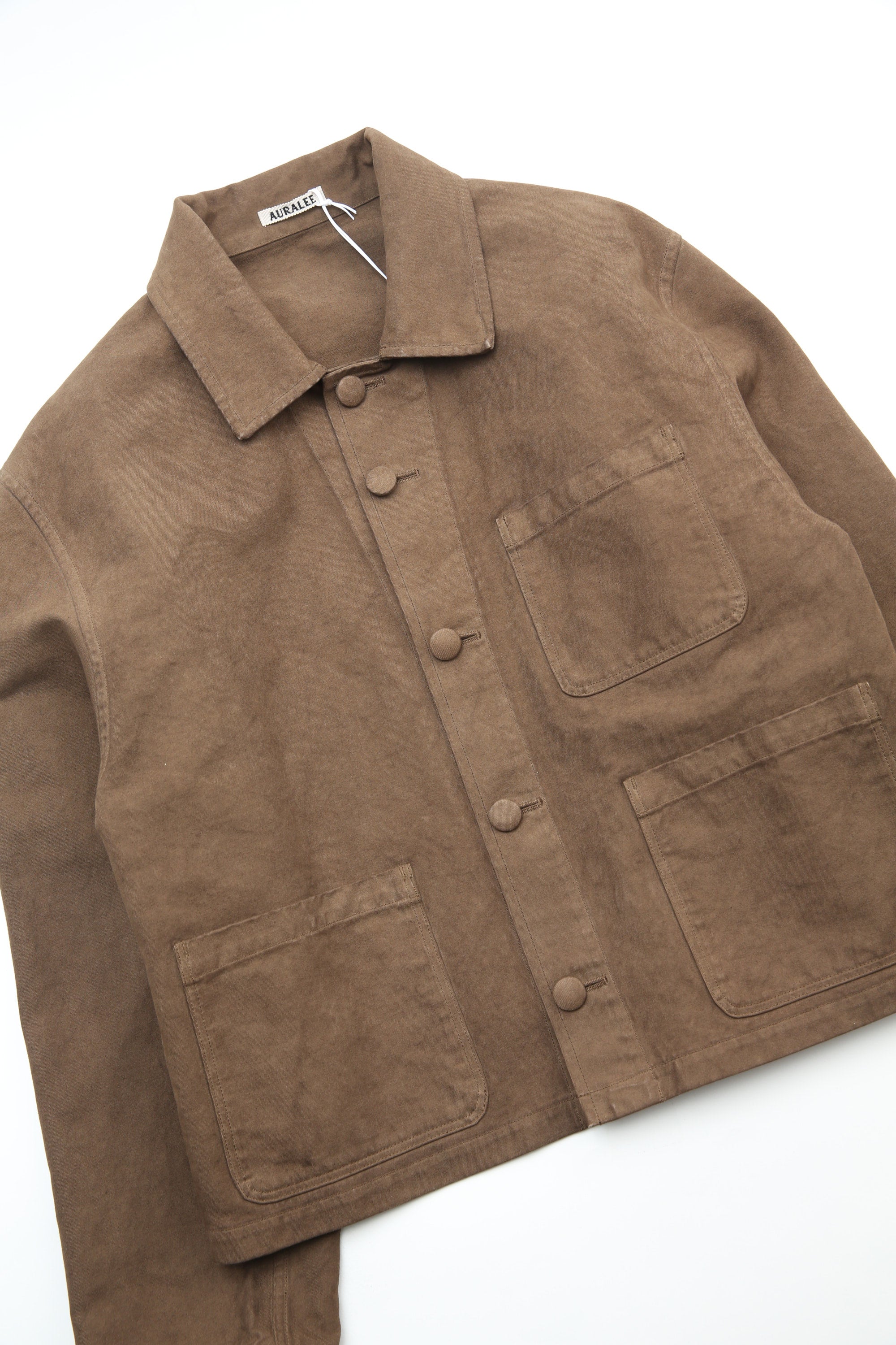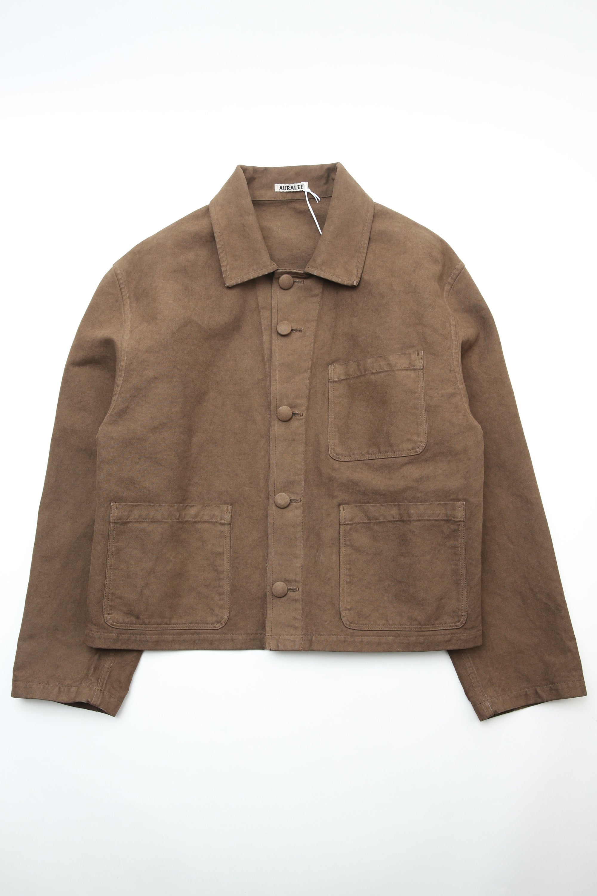 Auralee Garment-Dyed Organic Cotton Heavy Twill Short Work Jacket - Dark Brown