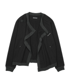 Wrap-style jacket with overlapping front opening, can be styled open for a drapey look