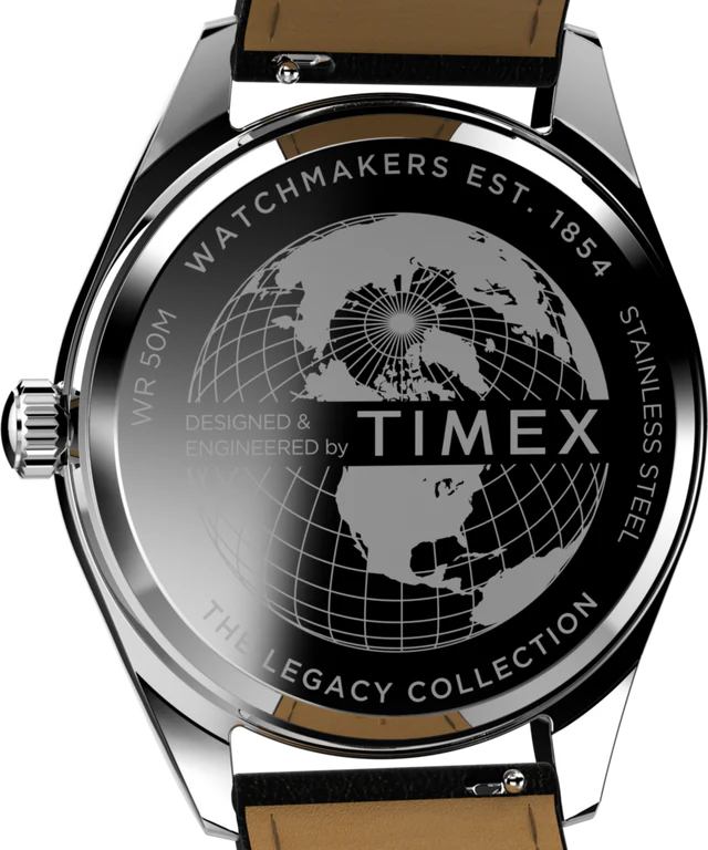 A fresh take on a traditional watch, the Timex Legacy never fails to find new ways of telling our story. This timeless piece embraces modern watchmaking with easy-to-wear proportions, now updated with an eco-friendly brown vegan leather strap. Its recycled stainless-steel case houses a blue sunray dial with applied indices, a movement with the day of the week spelled out in full at the 12 o’clock position, and a magnified date window at the 3rd hour marker. It’s a 41mm goes-with-anything watch—a testament to our heritage and well-suited for everyday wear.