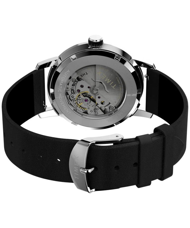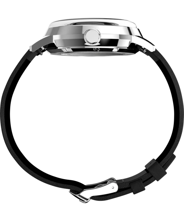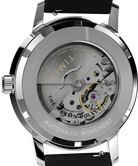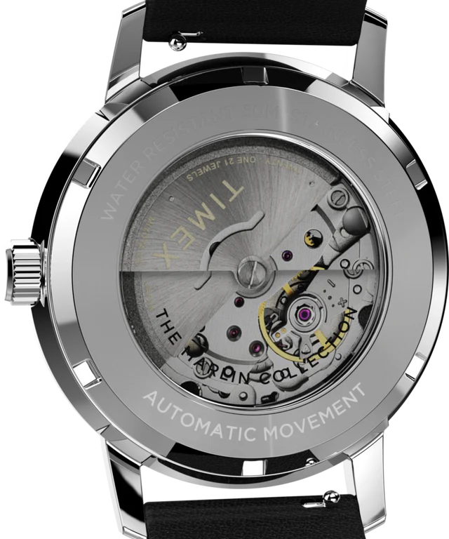 This fresh update to tthe Marlin Automatic features the iconic dial and hand design from one of the best-selling Marlin watches from the '60s, complemented by a sturdy 40mm stainless-steel case and a blue sunray dial. Ticking inside is a tried-and-true 21-jewel Japanese automatic movement that’s powered by your motion as you wear the watch and can store a maximum 40 hours of energy. If motionless for longer than 40 hours, wind the watch using the crown until you feel resistance, set the time, and place it back on your wrist where every motion will supply the energy. Crowning the case is a vintage-style domed acrylic crystal and complementing its smooth profile is an eco-friendly black natural leather strap sourced from the Leather Working Group (LWG).