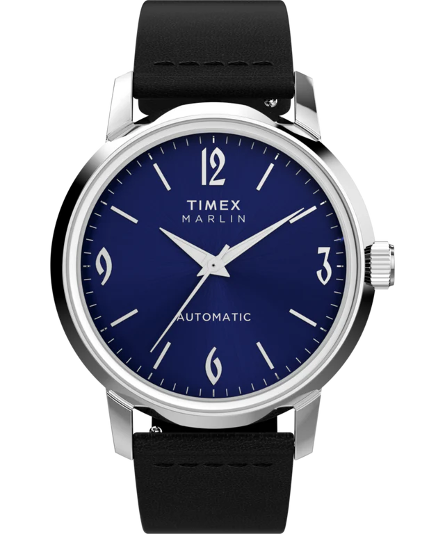 Timex® Marlin® Automatic 40mm Leather Strap Watch - Blue Sunray Dial