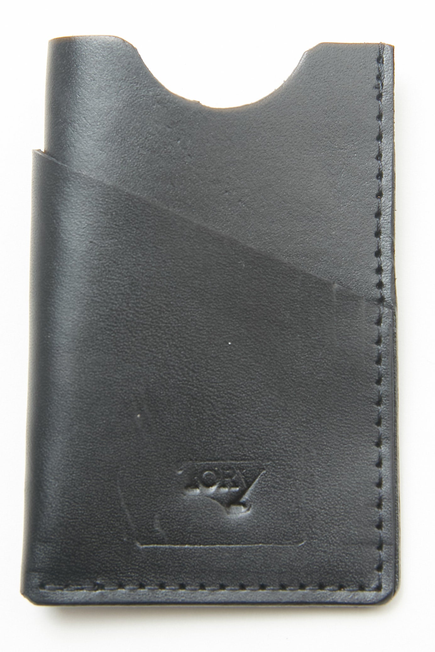 2-7/8” x 4” Bridle Leather with center envelope pocket for cards and vertical card slots on each side