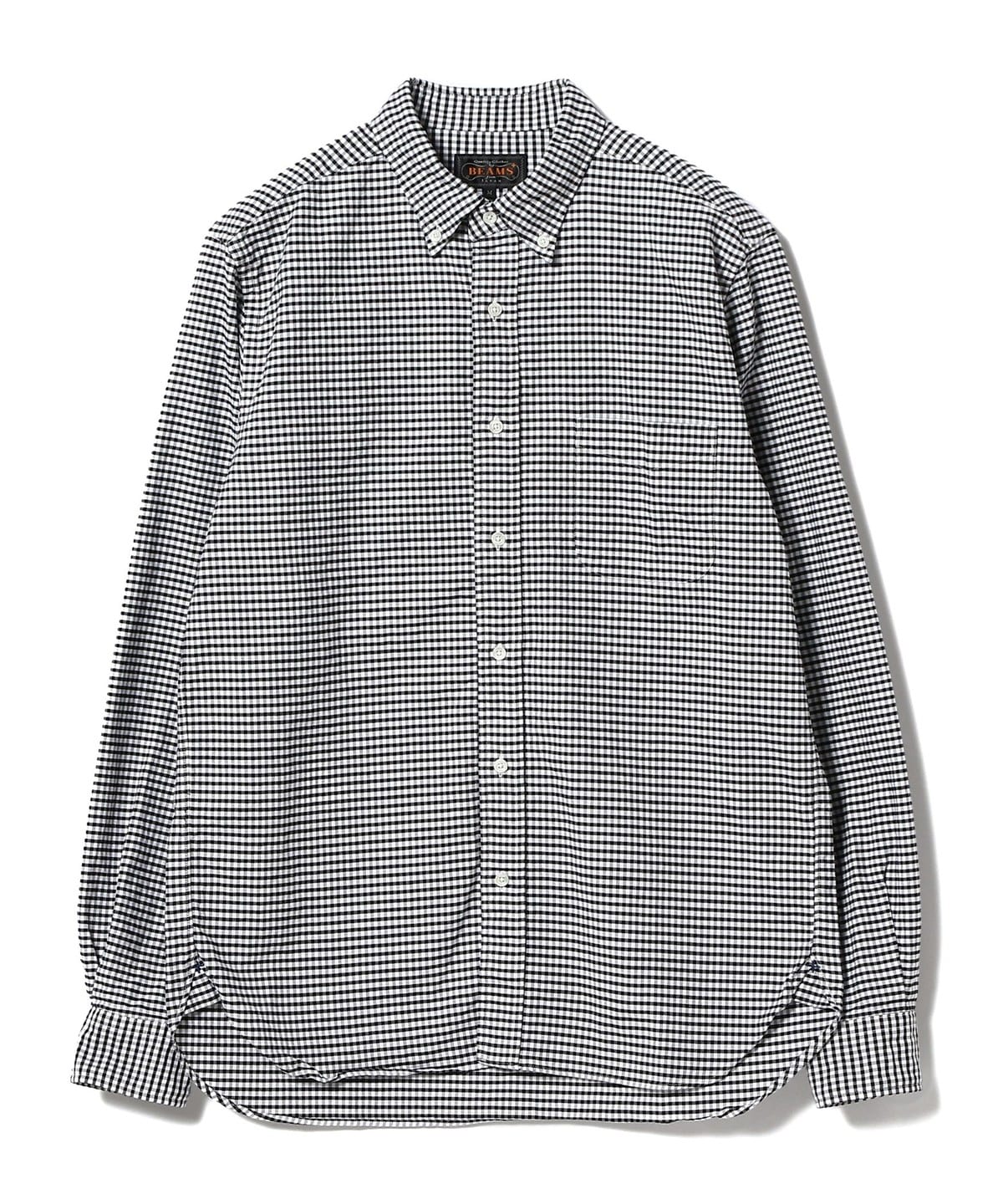 This BEAMS PLUS button-down shirt features a gingham check pattern on Oxford fabric, creating a casual look. It offers a refreshing contrast to plain Oxfords.