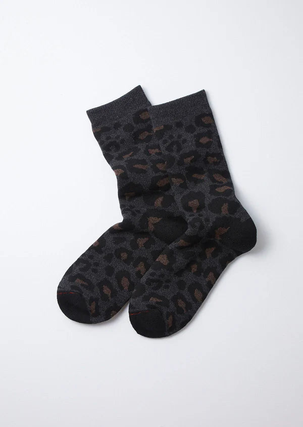 RoToTo Pile Leopard Crew Sock - Charcoal