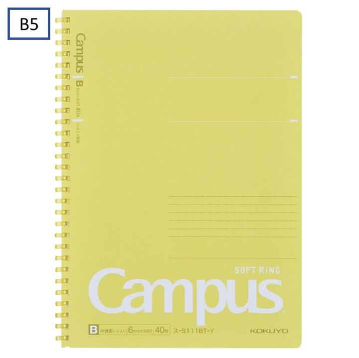 Kokuyo Campus Soft Ring Notebook | B5 - 40 Sheets - 6mm Dotted Line | Yellow