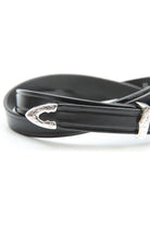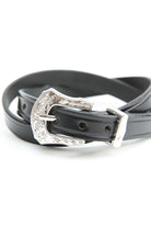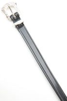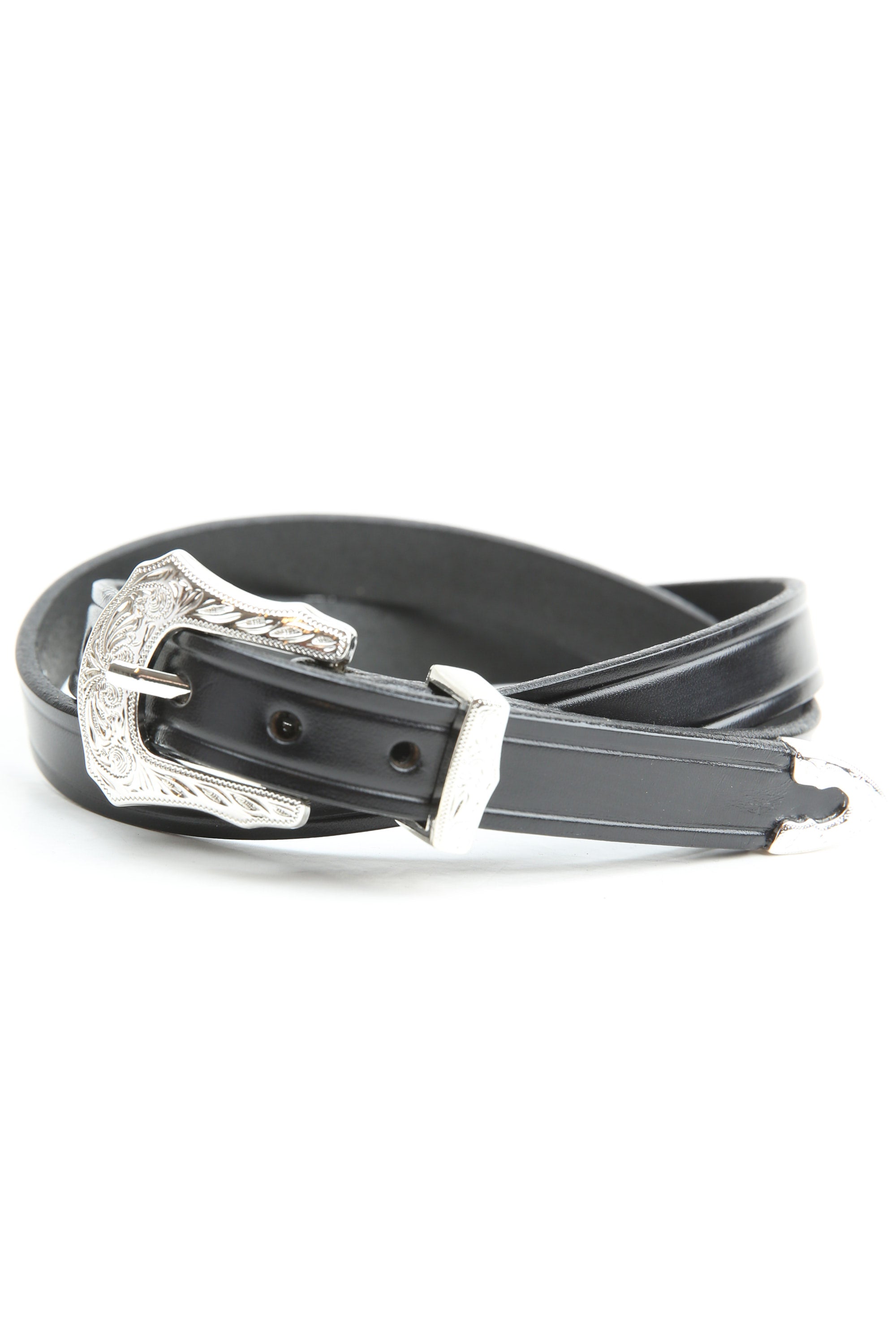 Tory Leather 3/4" Plain Creased Belt With 3-Pc Engraved Silver Buckle Set (2244) - Black
