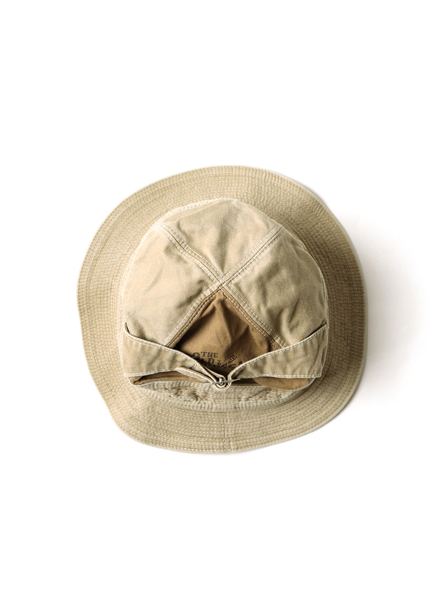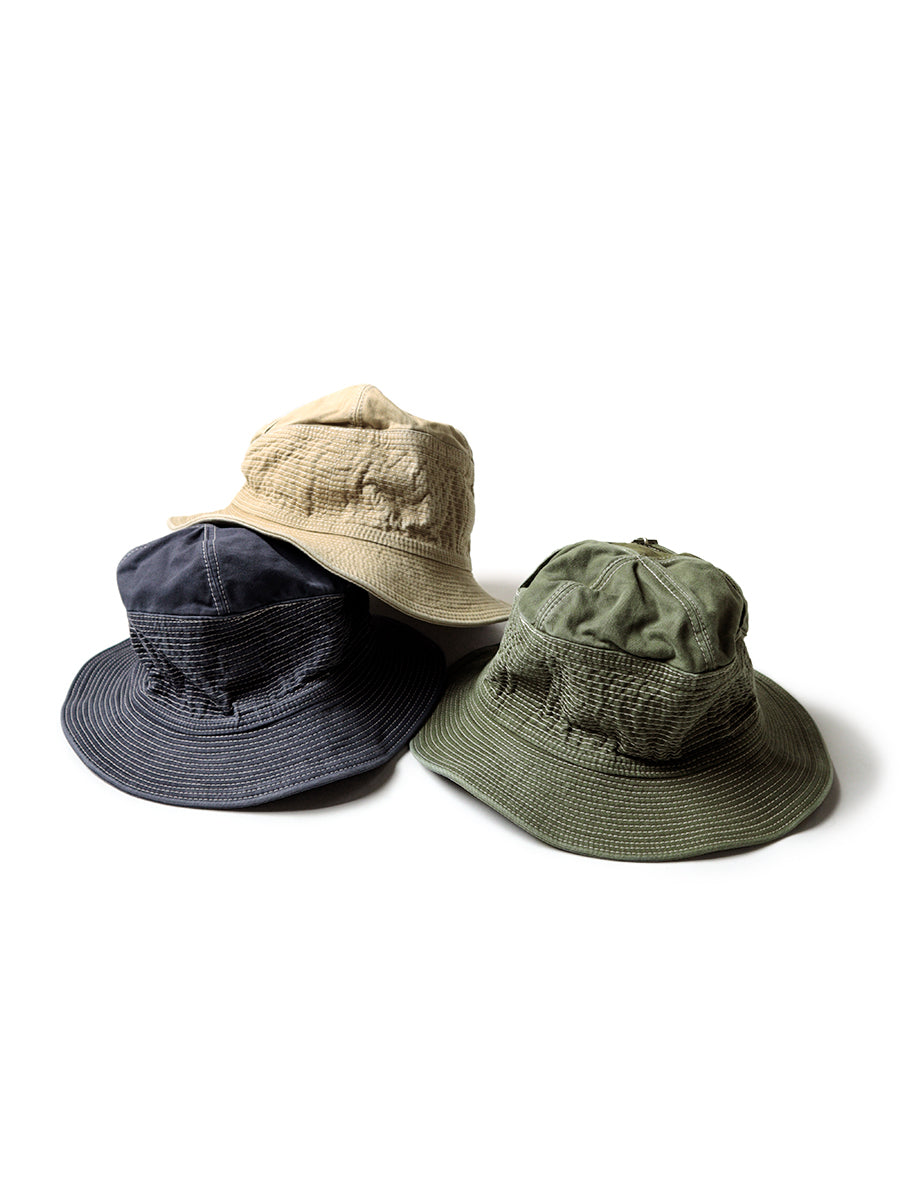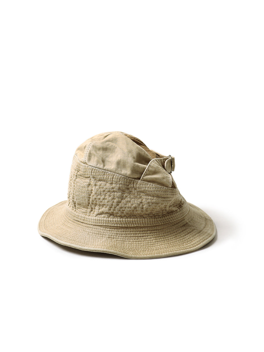 This hat is made of thick and sturdy chino cloth. The reinforcing stitching that covers the entire brim and more than half of the crown serves as both reinforcement and decoration.