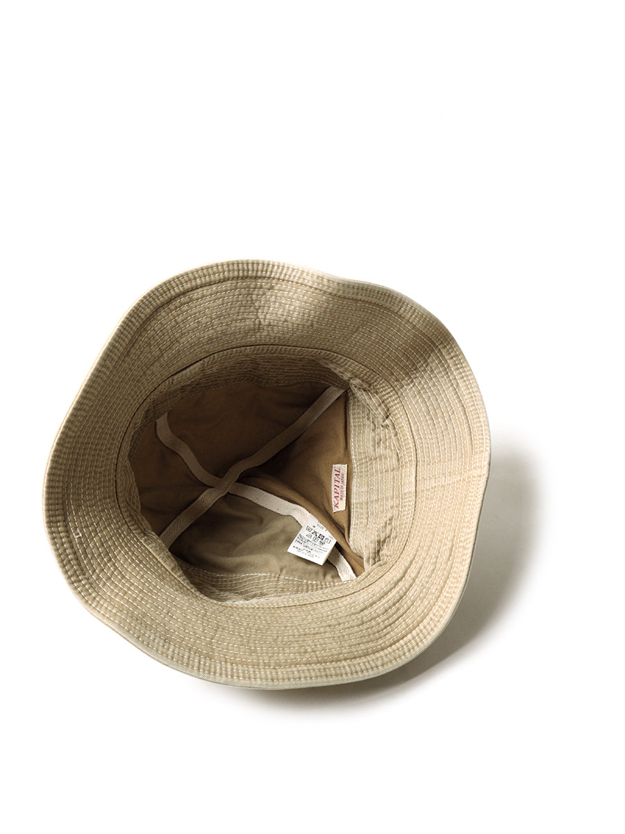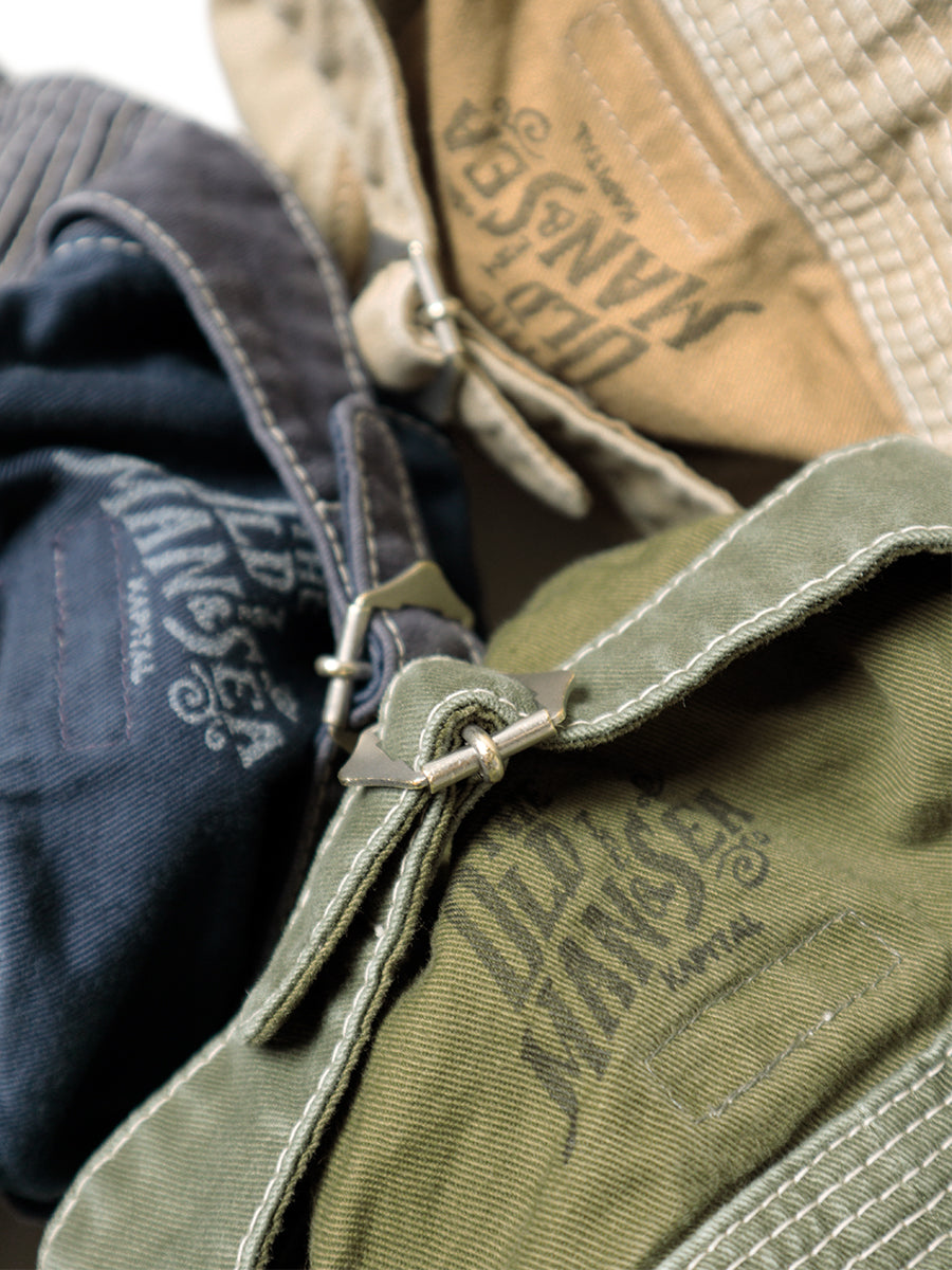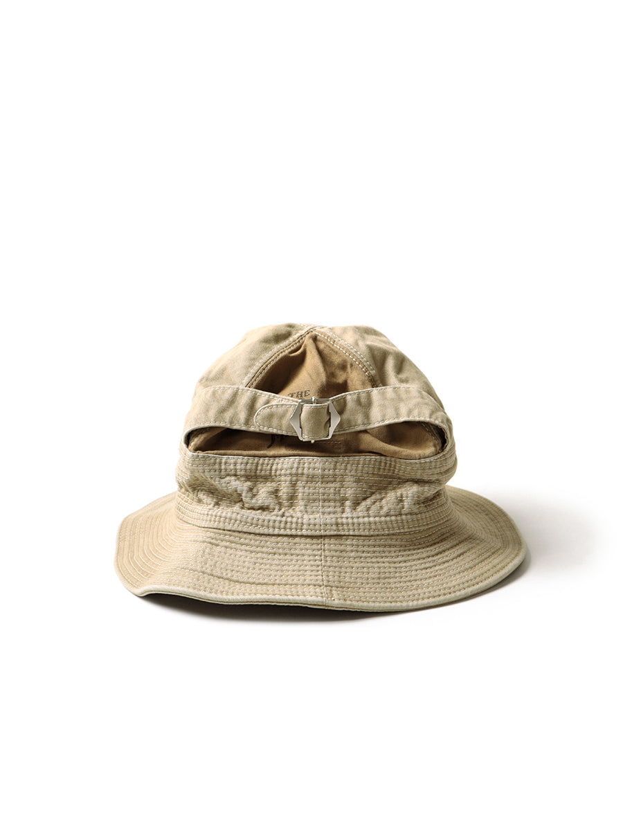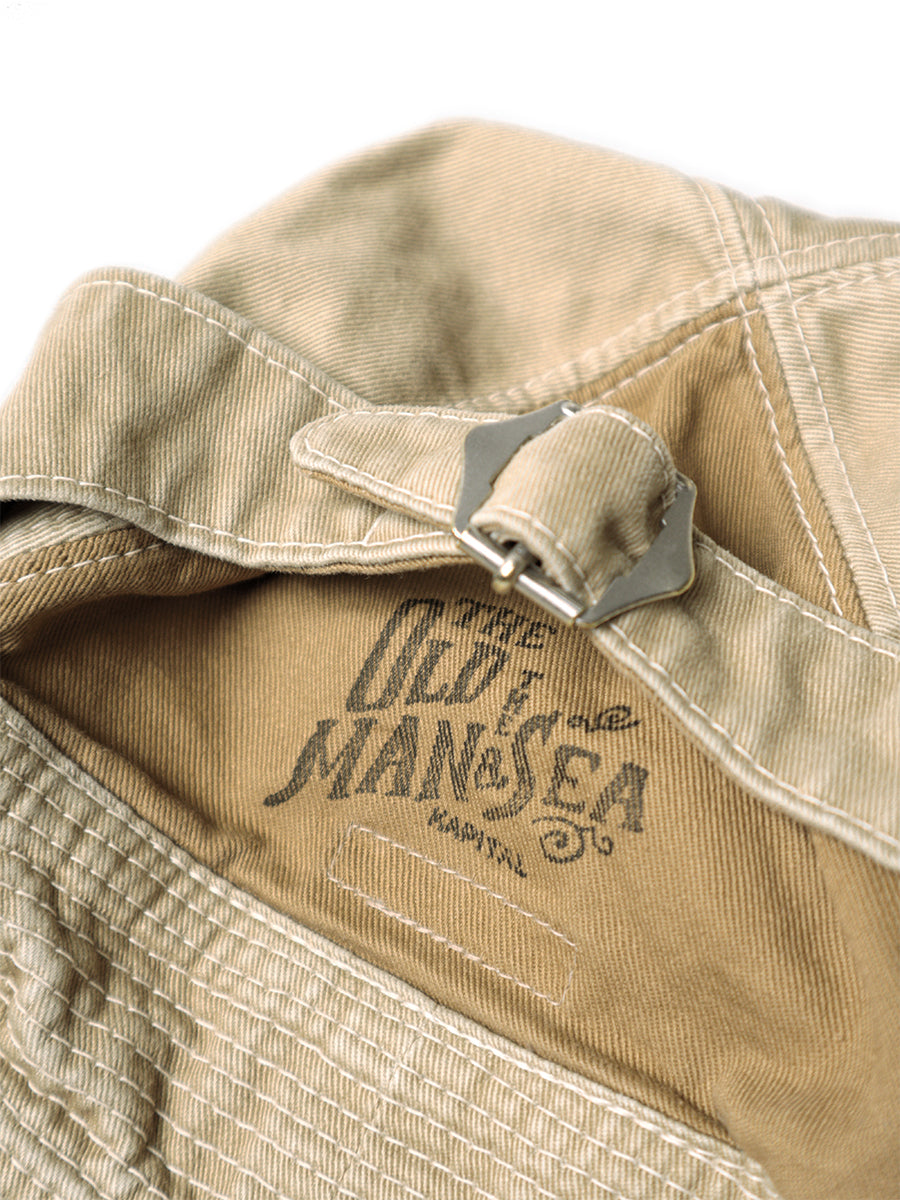 This hat is made of thick and sturdy chino cloth. The reinforcing stitching that covers the entire brim and more than half of the crown serves as both reinforcement and decoration.