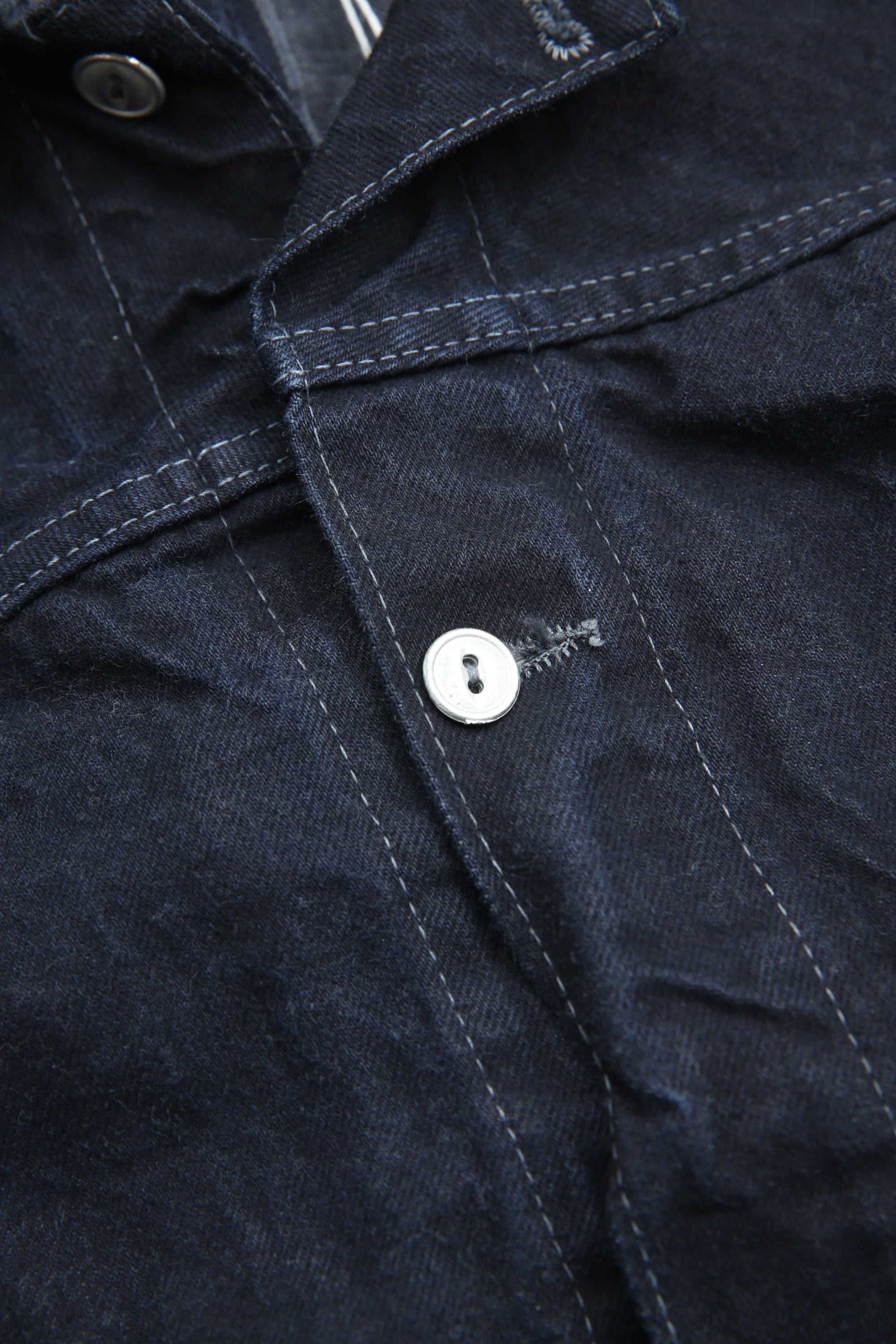 The 902 EDITED JEANS JACKET strips away the fuss to deliver pure denim joy. This straight-cut beauty features a smooth biased shoulder (thanks to those clever back panels) that feels as good as it looks. Two generous front pockets, selvedge-detailed center seams, and 16oz fabric woven on vintage shuttle looms give it serious character—think slubby texture that begs to be worn in. The rinse wash finish means your jacket will develop its own signature story, patina and all. Topped off with classic chain-stitching and hand-cast pewter buttons made right here in England. A timeless piece that gets better with age.