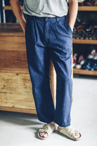 Get ready to elevate your style with the orSlow Two Tuck Wide Denim Trousers! These comfy, loose-fitting beauties boast a mid-rise and straight legs perfect for all-day wear. Made from 100% cotton washed denim with charming pleated fronts, their one-year wash adds just the right touch of cool indigo vibes. With handy side pockets, buttoned back pockets, and a button fly, these Japanese-crafted trousers bring both fun and function to your wardrobe. Step out in confidence and comfort!
