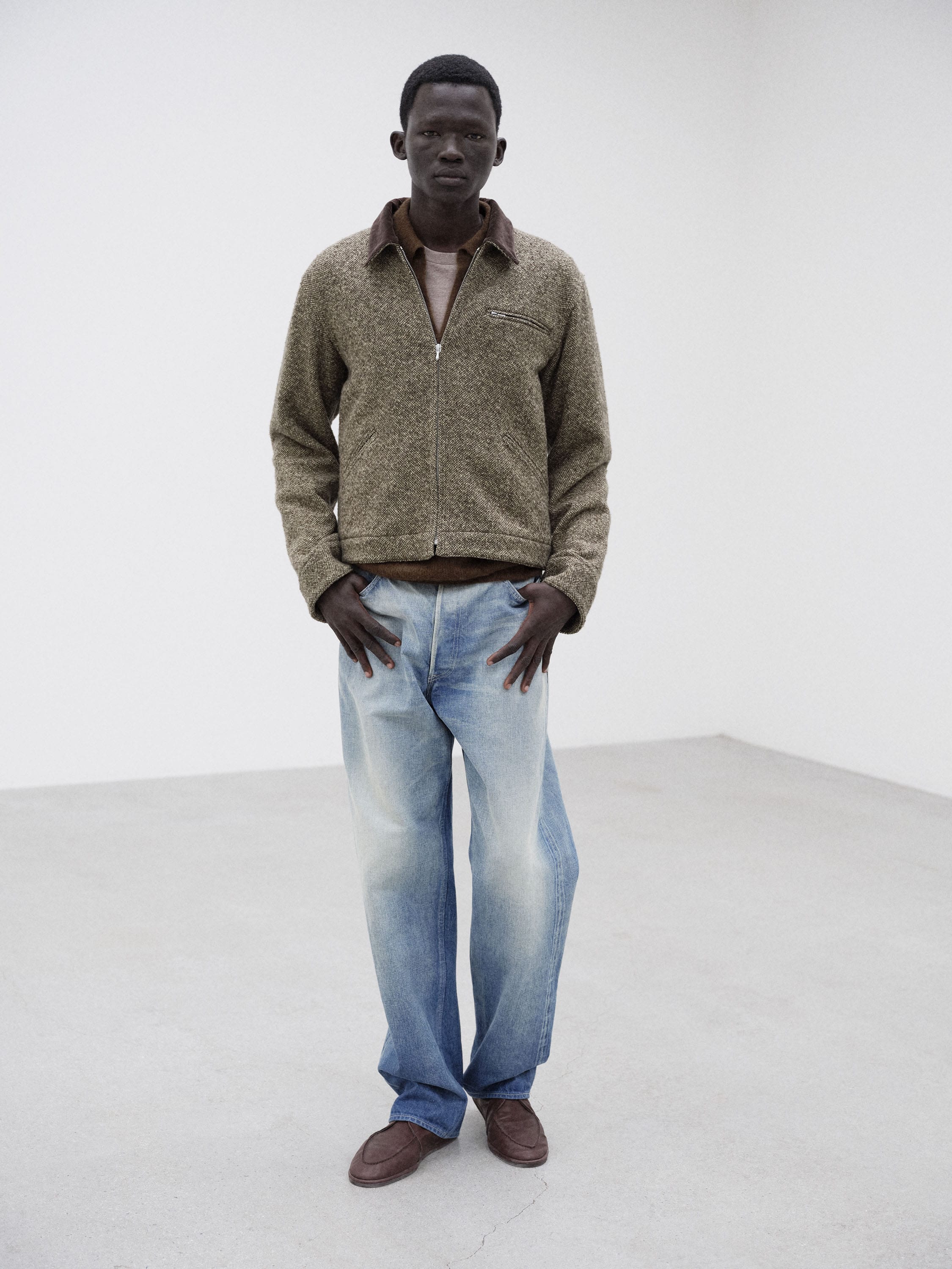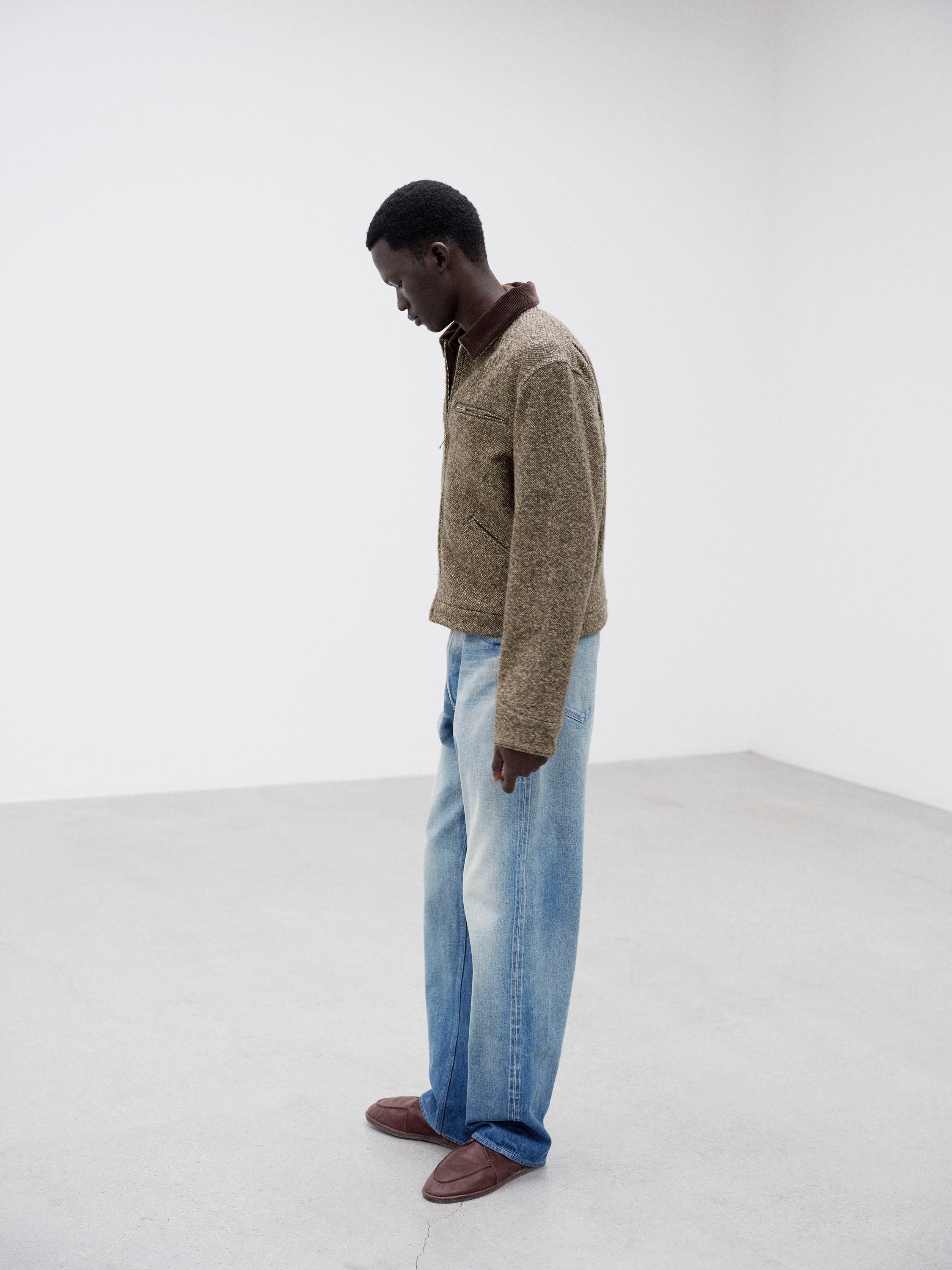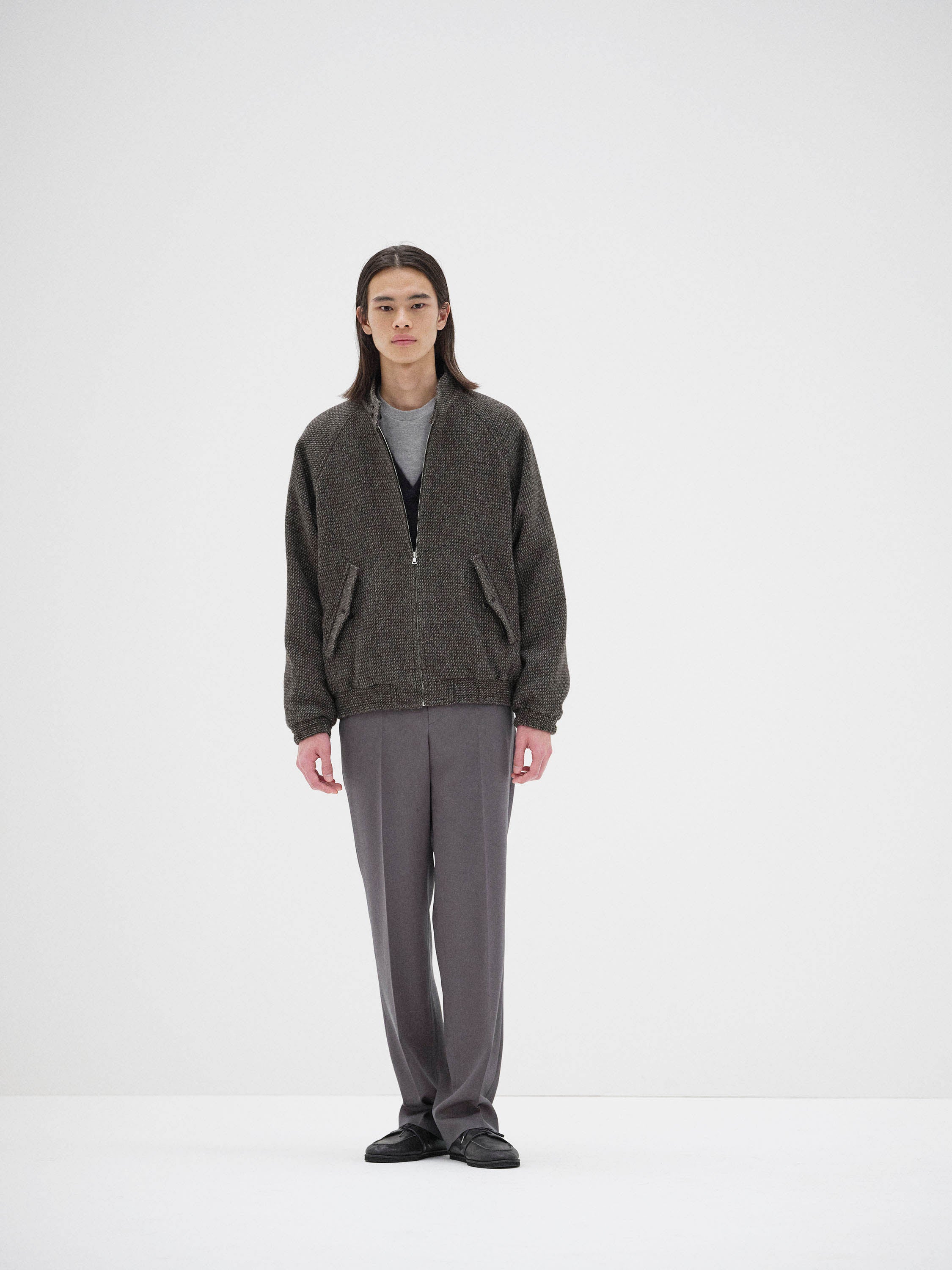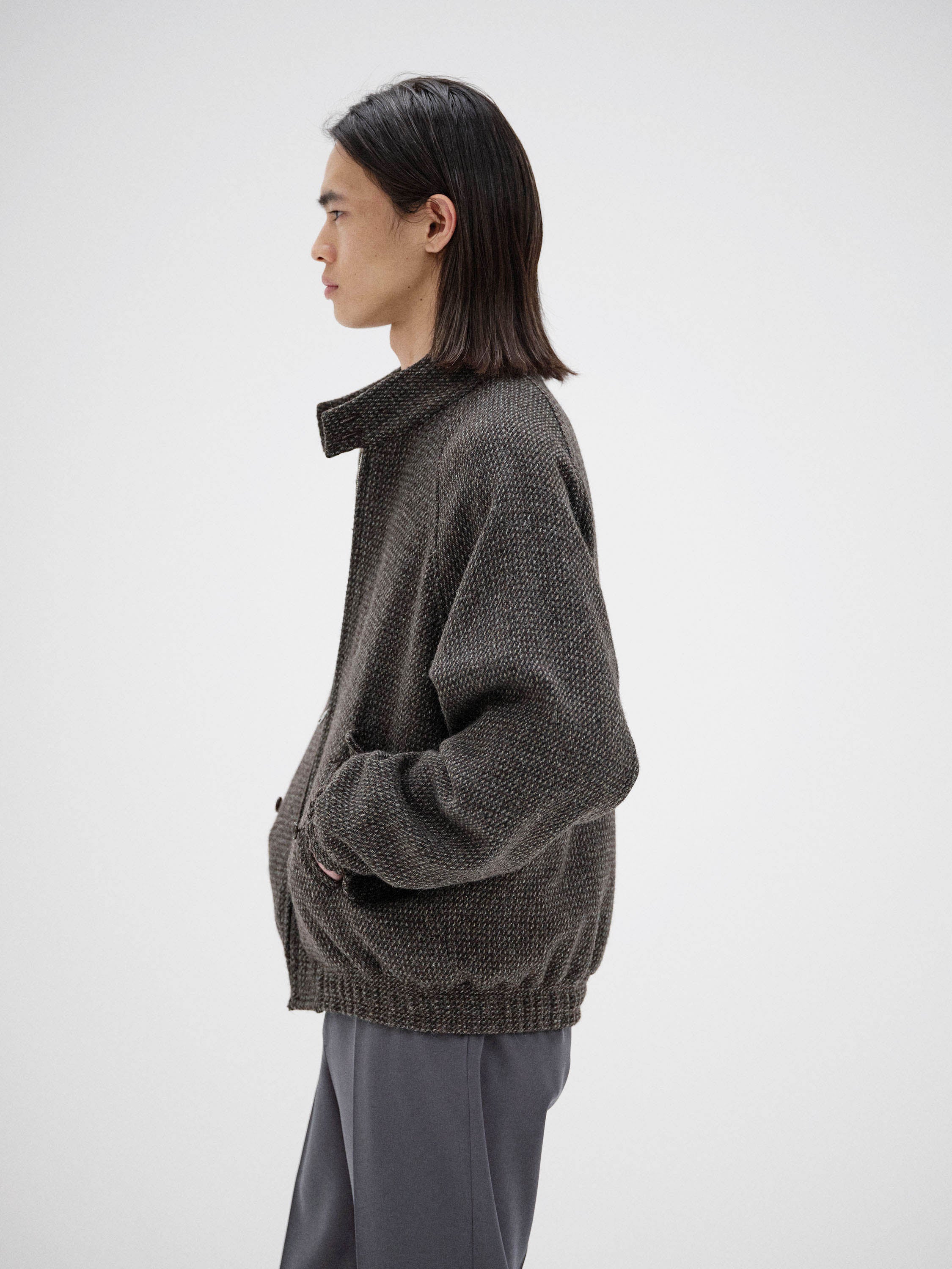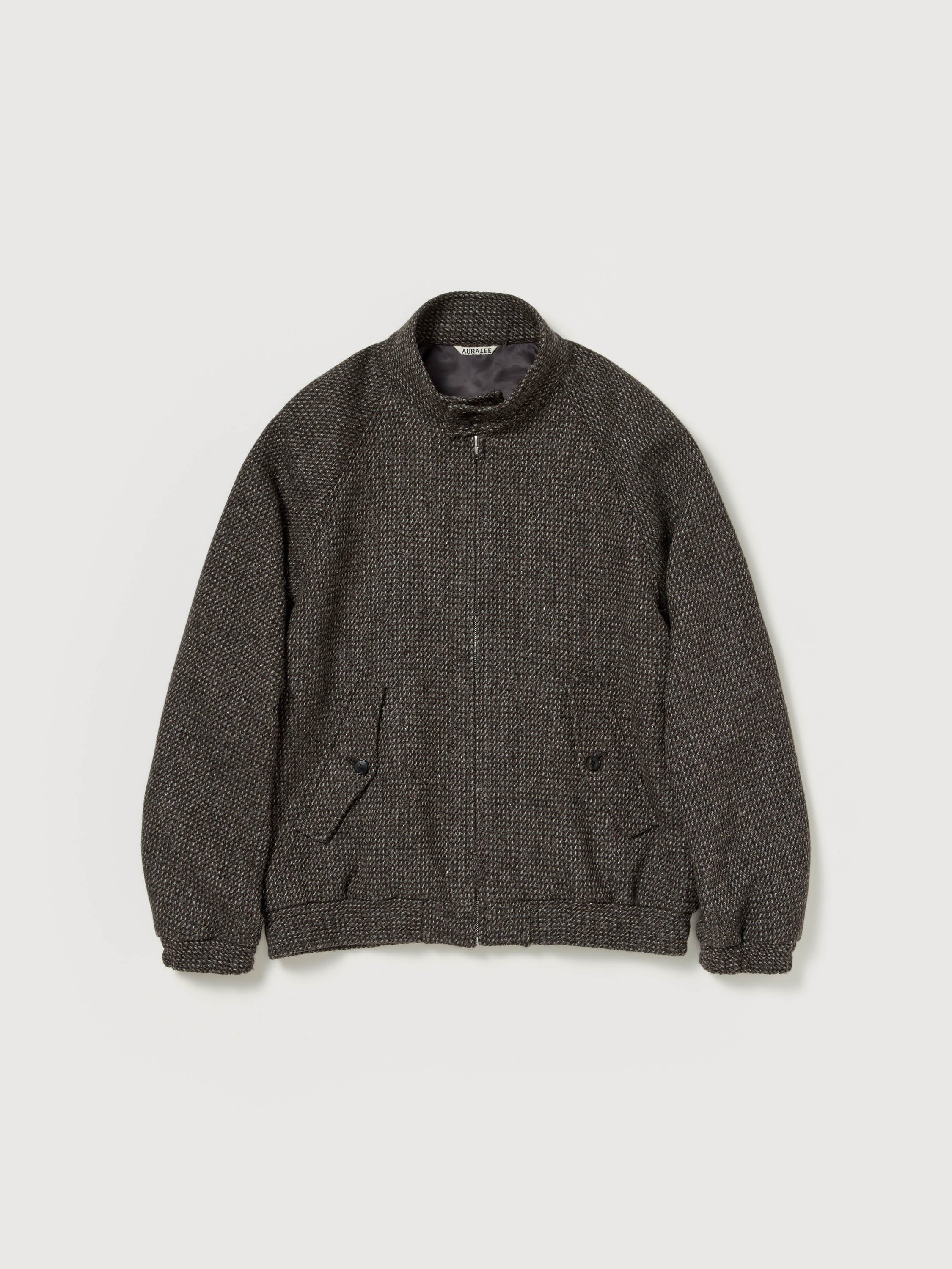 Auralee Alpaca Wool Silk Tweed Zip Blouson - Gray Brown Hairline