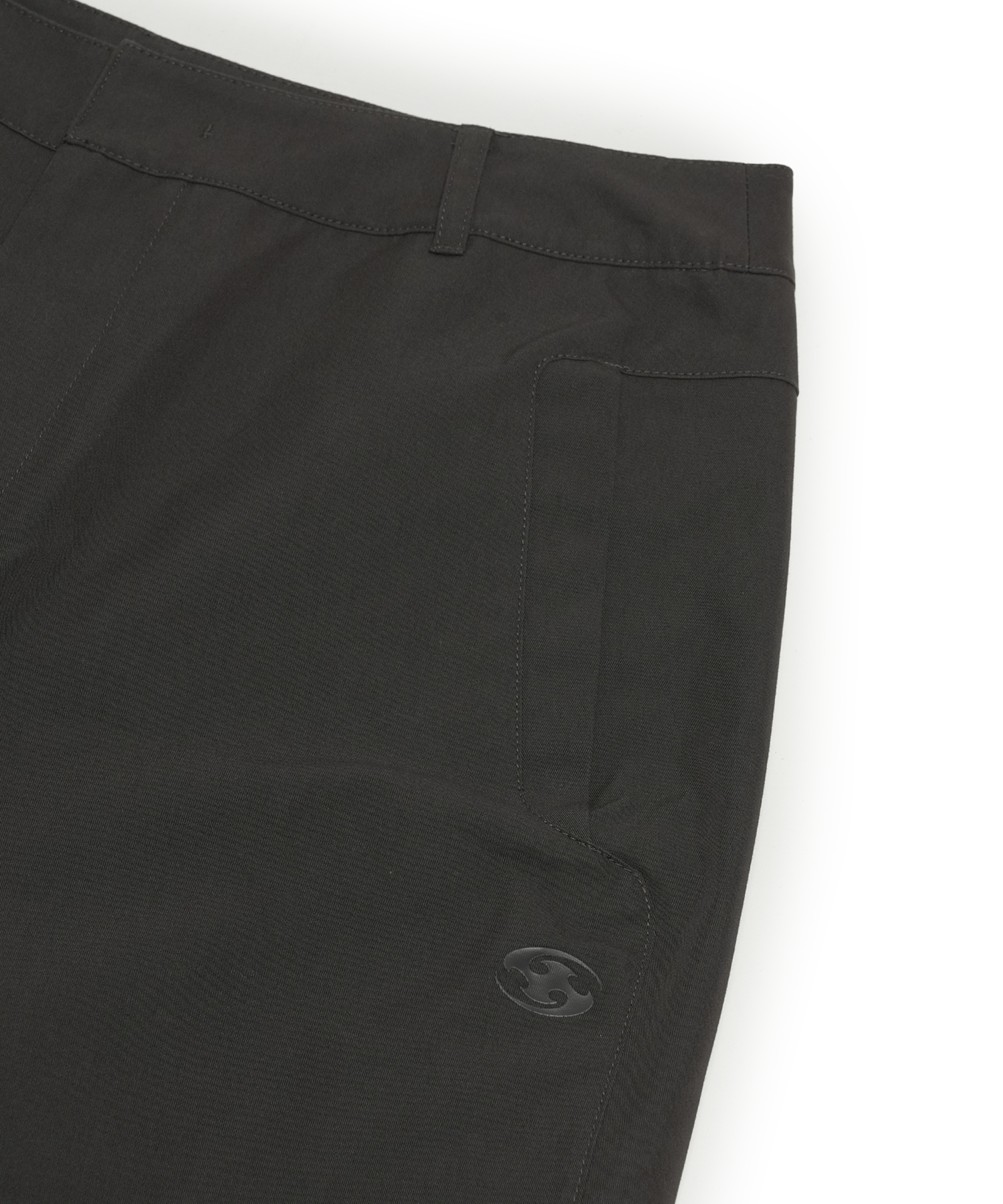 - Curved outseam line connected to pocket