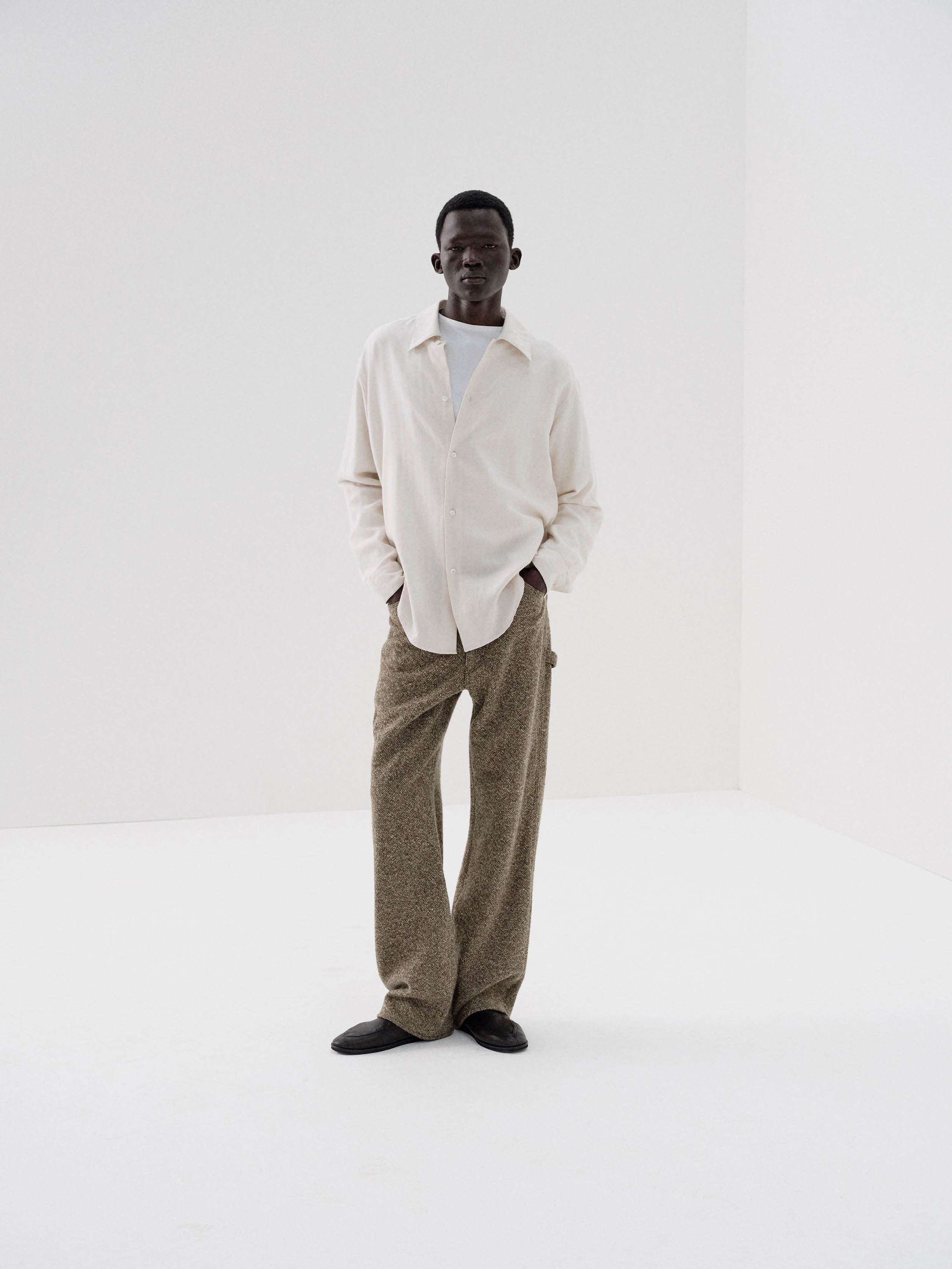 AURALEE Super Fine Tropical Wool Open Collar Half Sleeved Shirt - TOP LIGHT BROWN