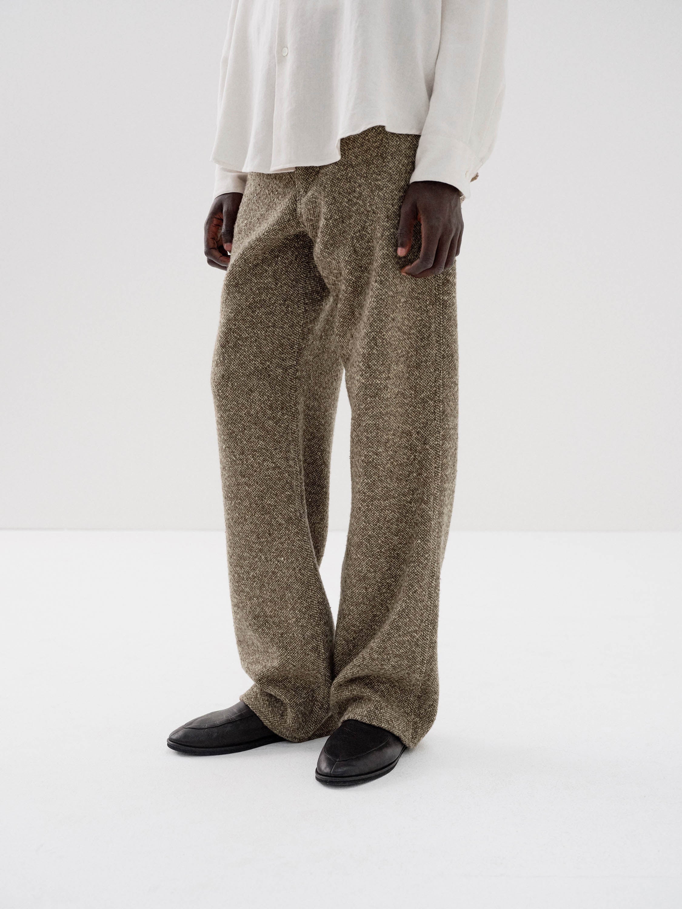 AURALEE Tropical Wool Kid Mohair One-tuck Slacks - BROWN CHECK