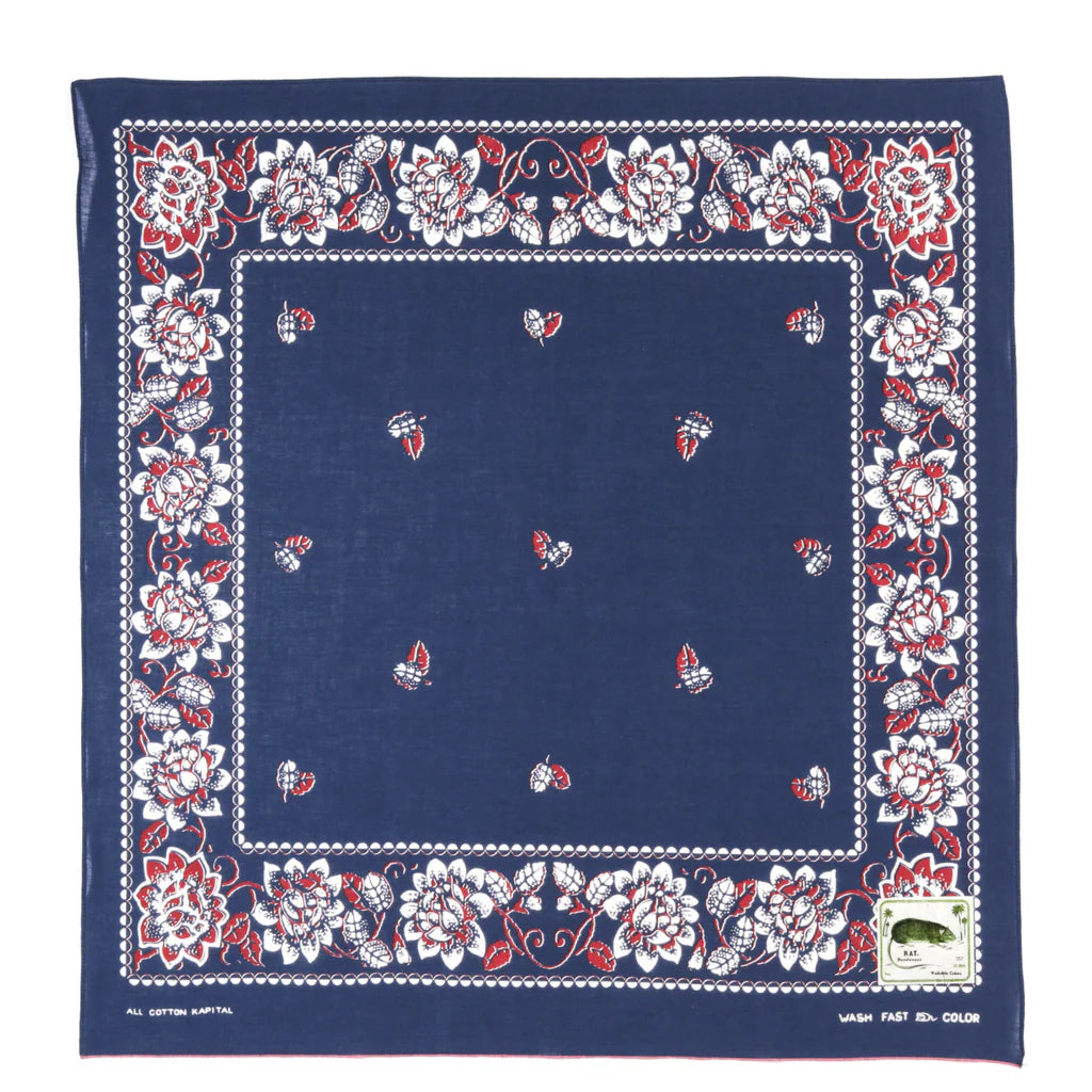 KAPITAL FASTCOLOR SELVEDGE BANDANA ROCKWELL FLOWER NAVY