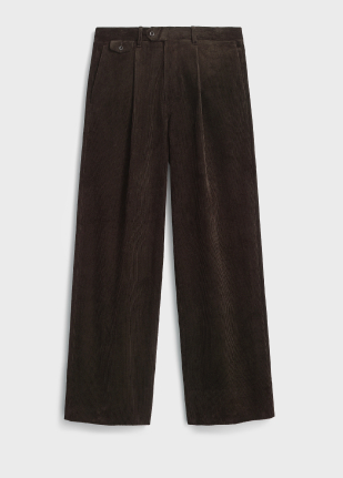 Pottery Corduroy One Pleated Wide Pants - Brown