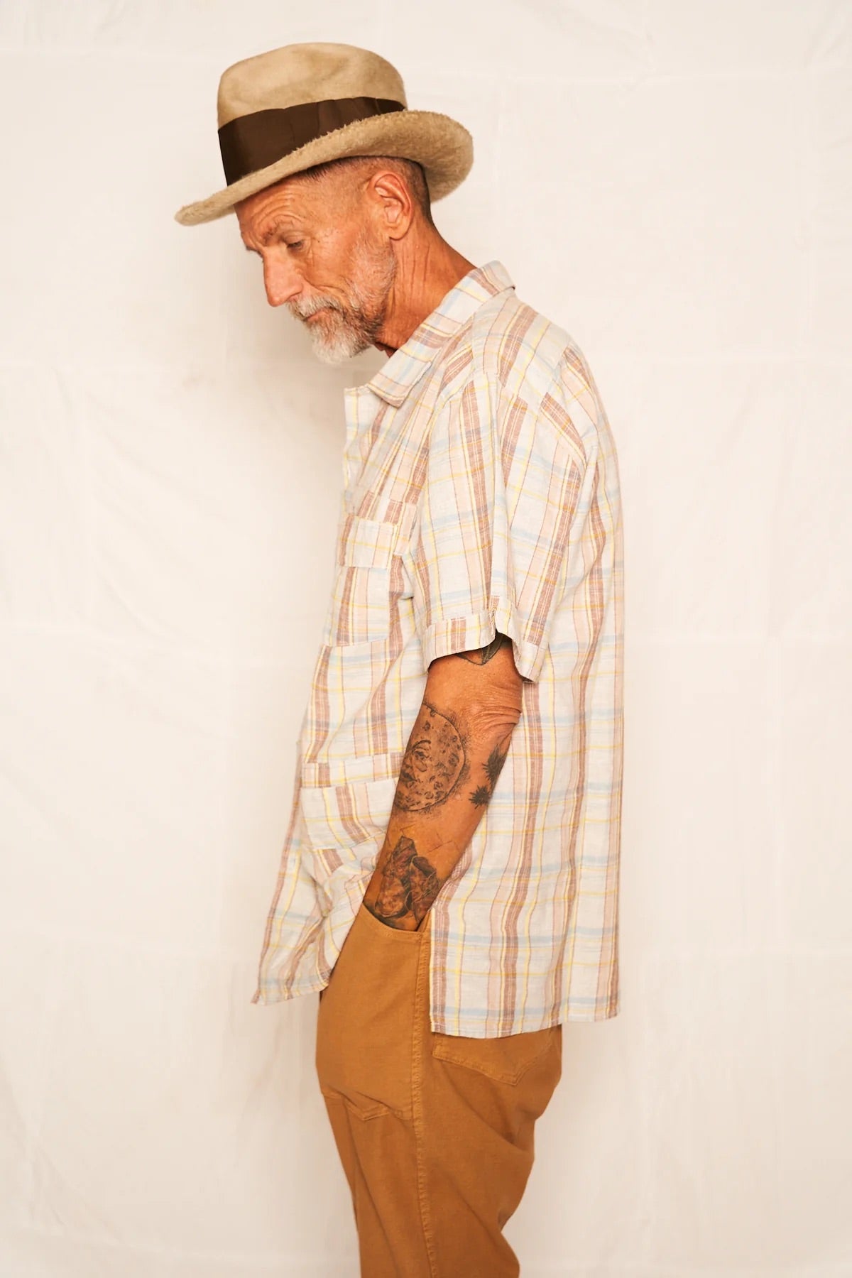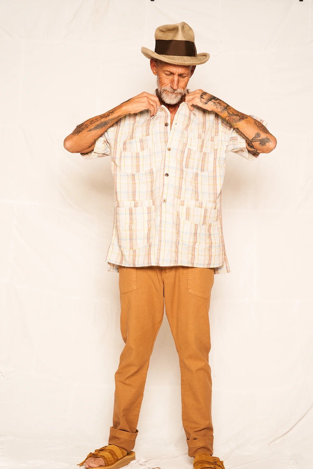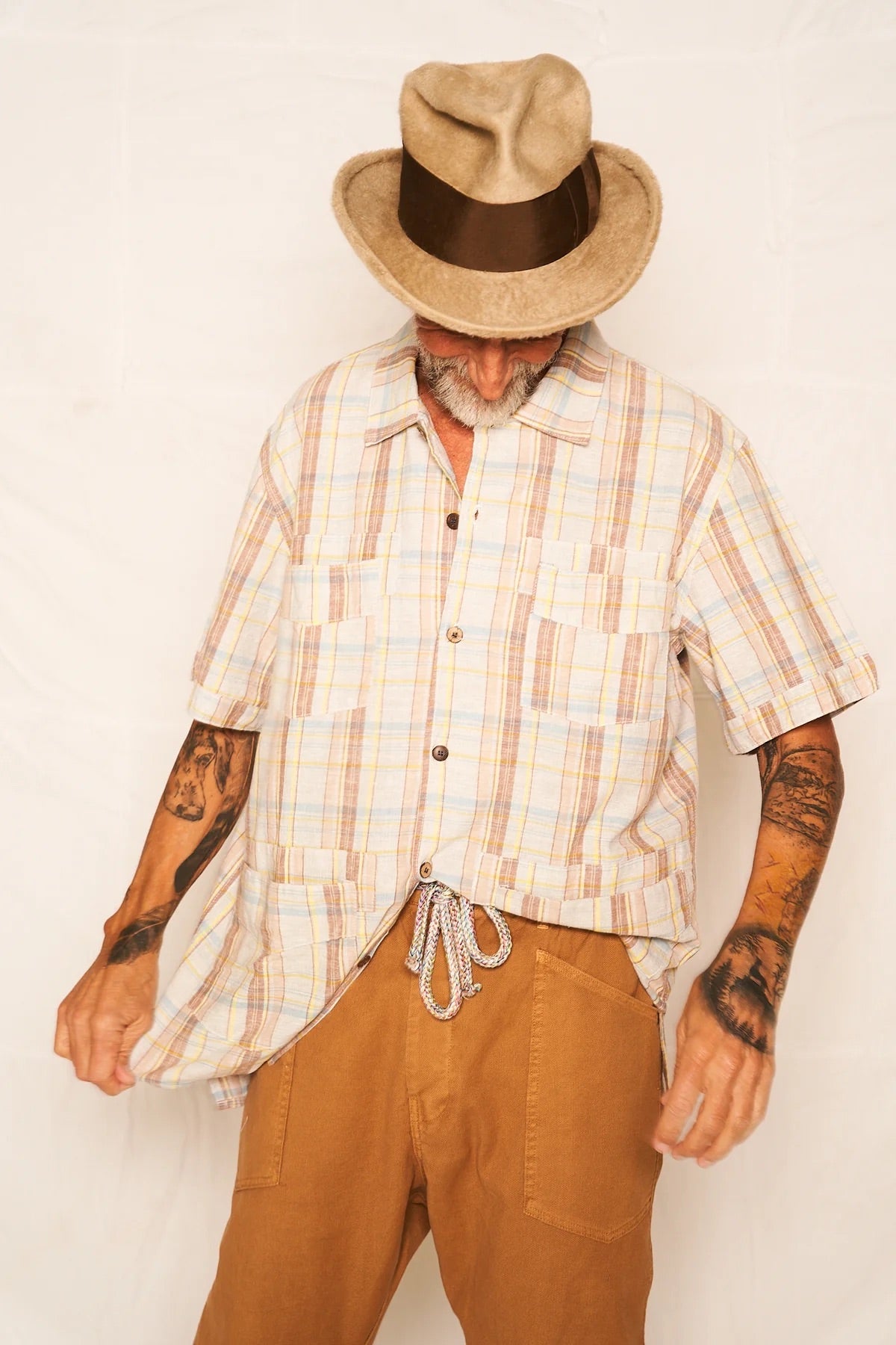 OAXACA SHIRT LINEN COTTON MADRAS 4oz WASHED RECYCLED PINK ABALONE SHELL BUTTONS