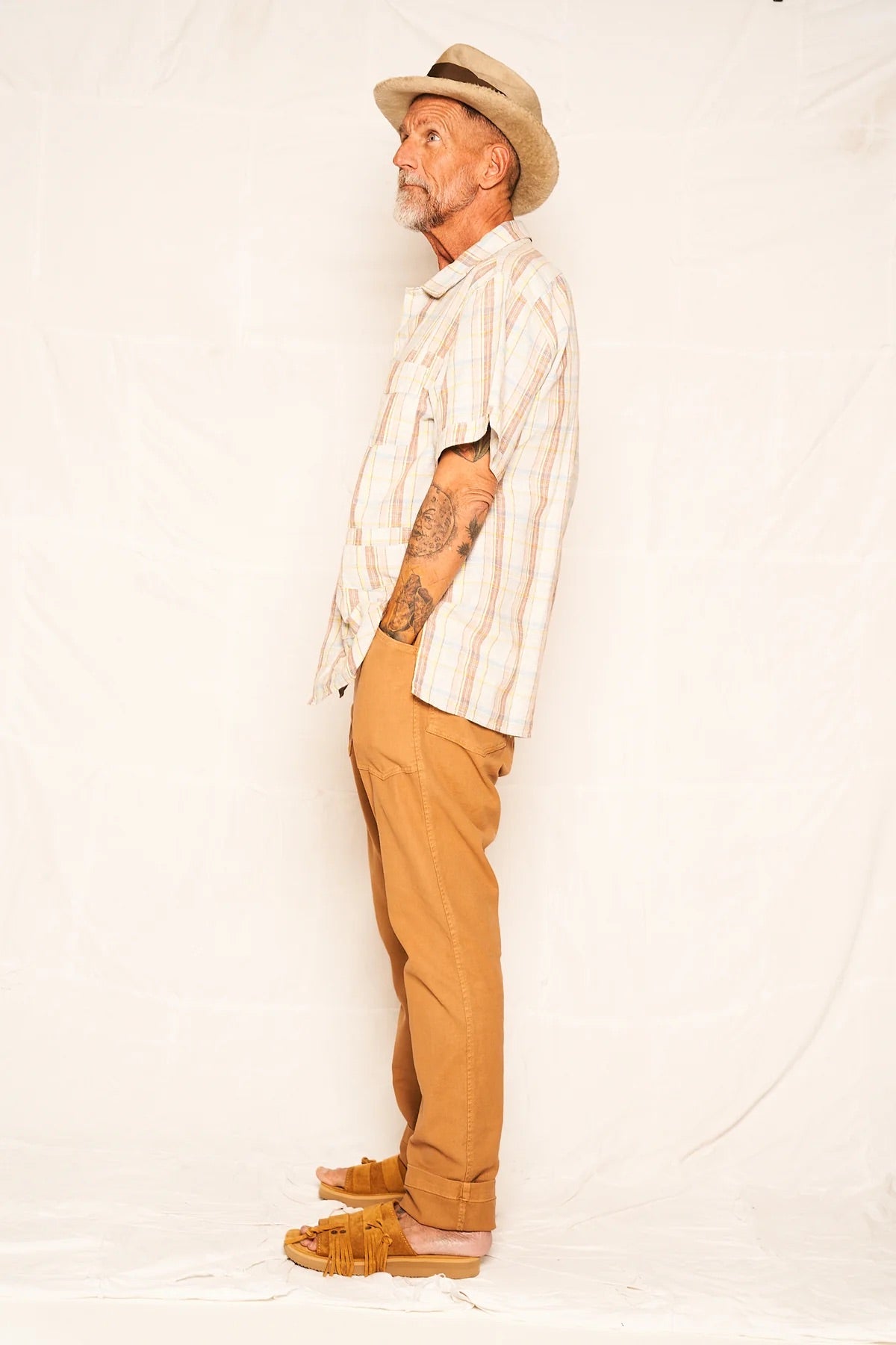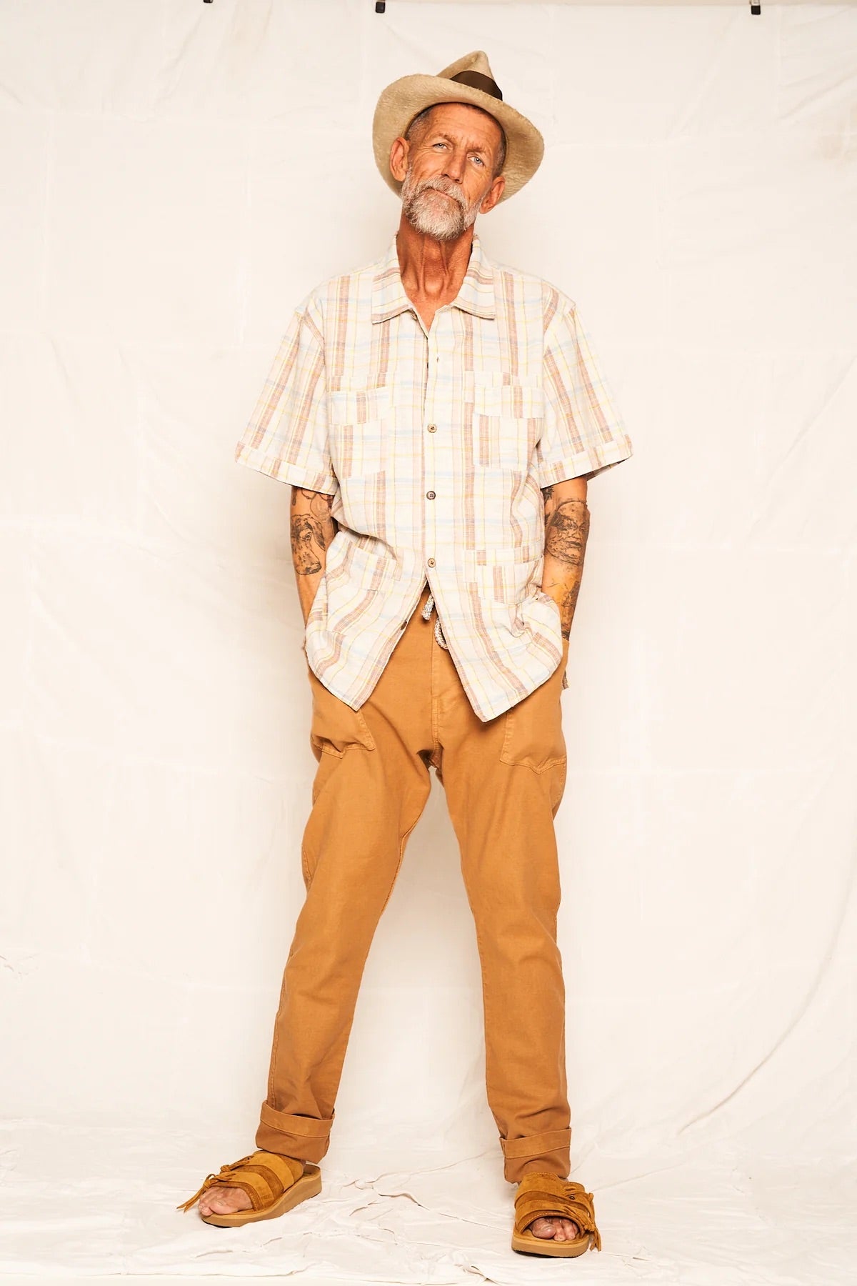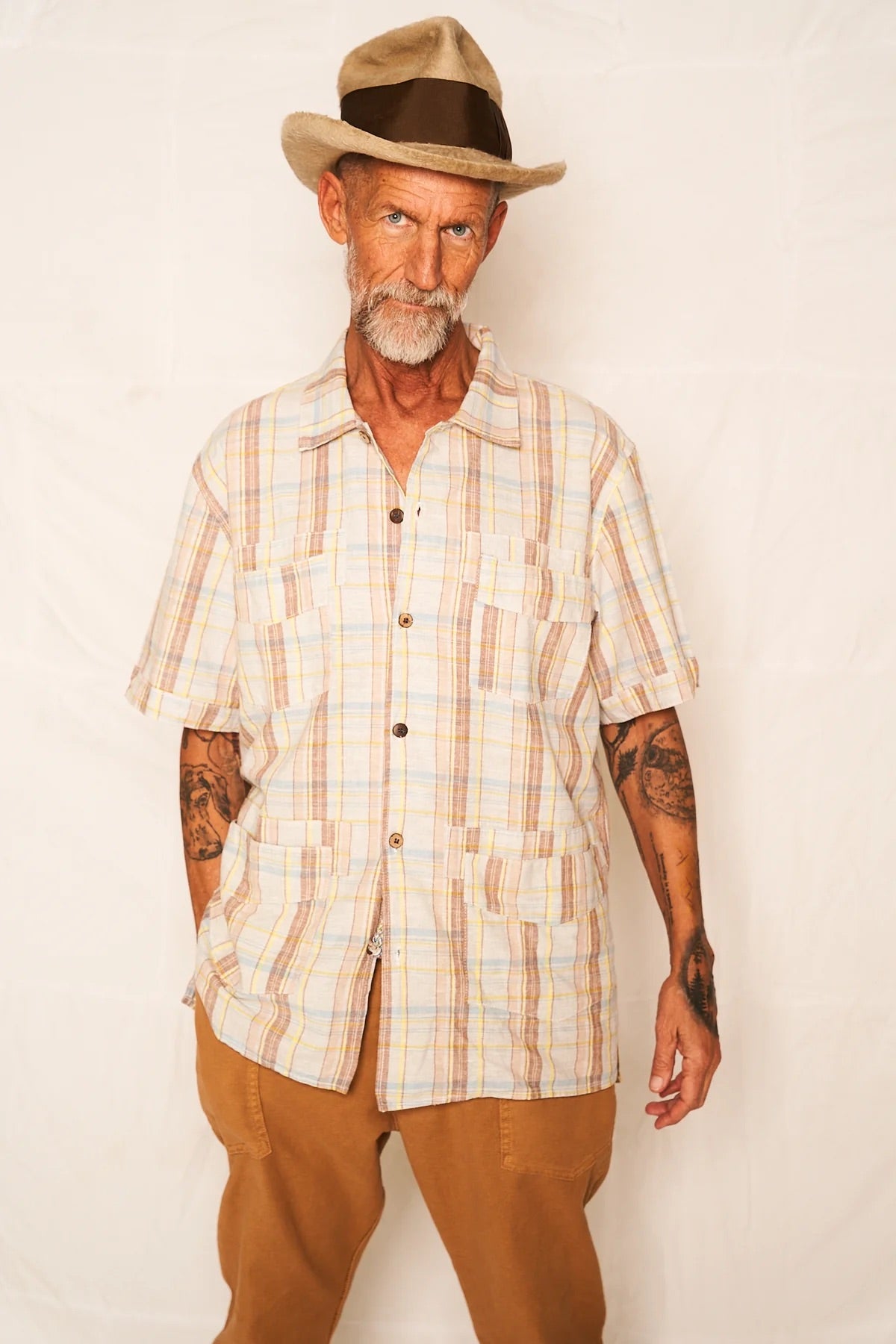 OAXACA SHIRT LINEN COTTON MADRAS 4oz WASHED RECYCLED PINK ABALONE SHELL BUTTONS