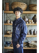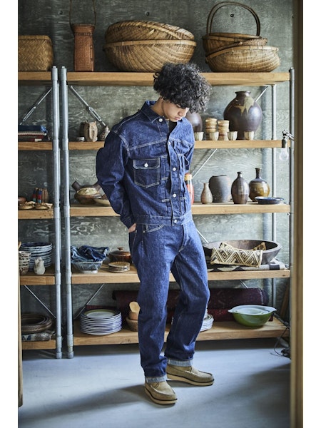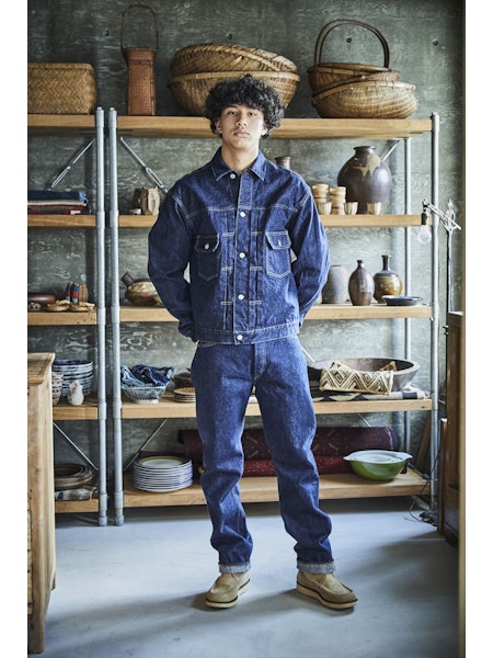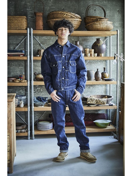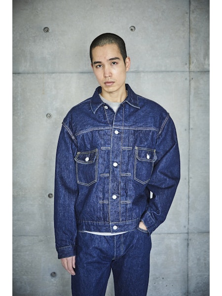 orslow's 50'S DENIM JACKET is produced using carefully selected original selvedge denim, starting from the thread stage. The fabric, woven with yarn that exhibits the natural irregularities seen in denim from the 1950s, evolves with wear and repeated washing, becoming a cherished item that develops a unique patina over time.