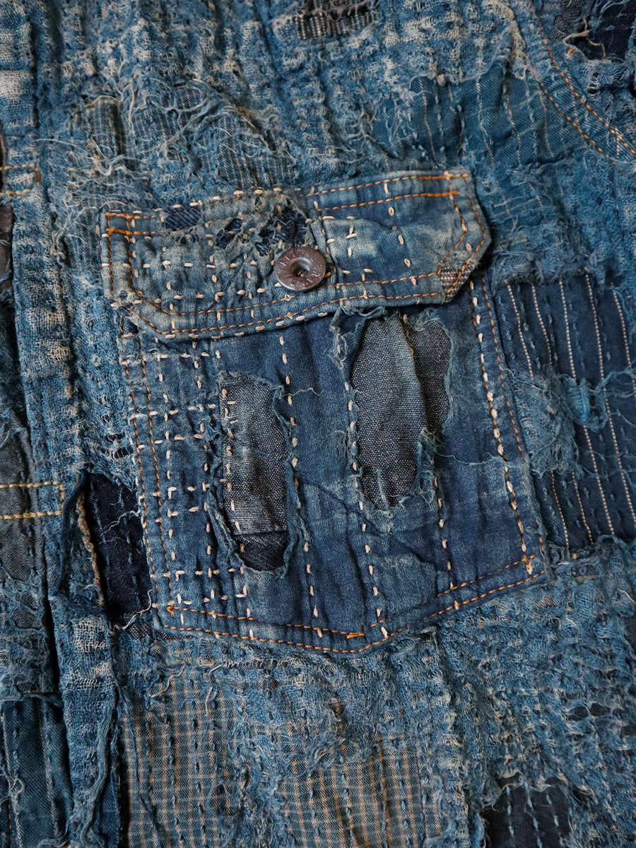 1ST jacket tailored with the original fabric "BORO". The back of the body is made of a blend of cupra and cotton, it is finished in a light and comfortable outerwear.