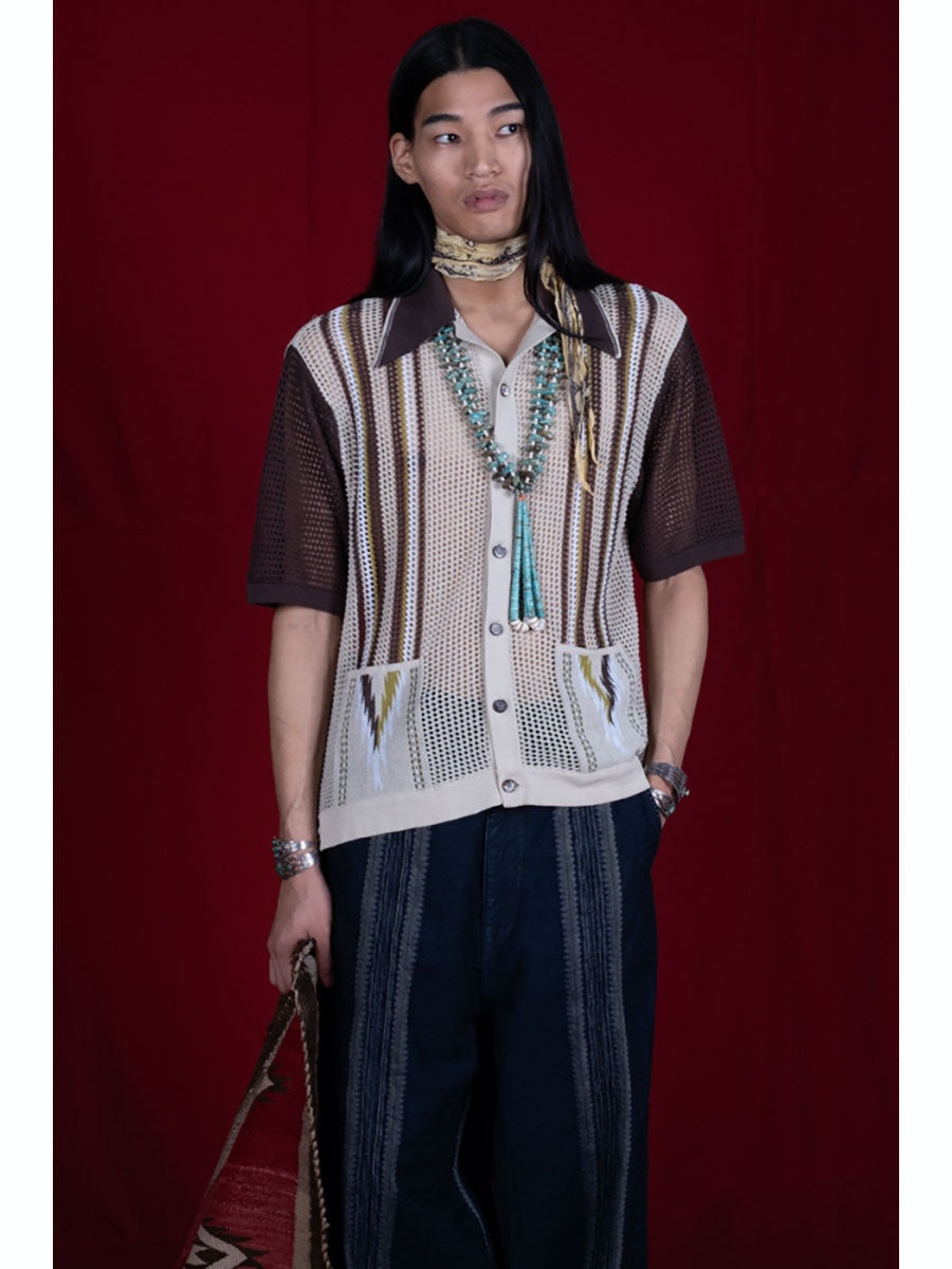 Kapital 12G Mesh Knit TENNESSEE Cuba Polo - Beige