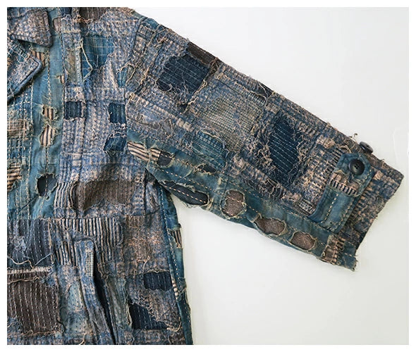 Conquer the cold in style with the Kapital BORO CAVALIER Coat. This long, one-of-a-kind coat is the ultimate Boro jacket, making it the one boro piece to rule them all. Don't just blend in with the crowd, stand out and make a statement with this unique piece.